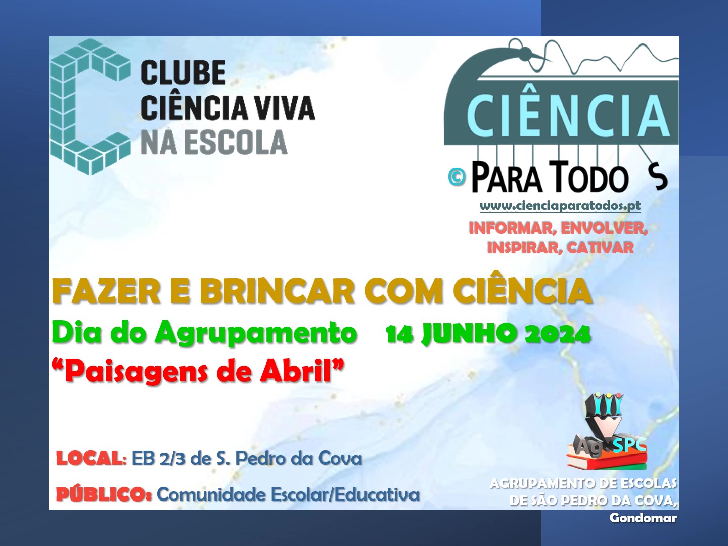 A CIÊNCIA SAIU À RUA NUM DIA ASSIM... Inspirada em Zeca Afonso, esta frase reveste-se hoje de alegria, vida e futuro! A CIÊNCIA faz bem, é INCLUSIVA e é mesmo para TOD@S! Os "Objetos de Ciência" do Projeto de Divulgação Científica - CIÊNCIA PARA TODOS continuam a sua caminhada pela ciência e tecnologia para todos no Clube Ciência Viva na Escola do AESPC, juntando-se às atividades celebrativas do “Dia do Agrupamento”.