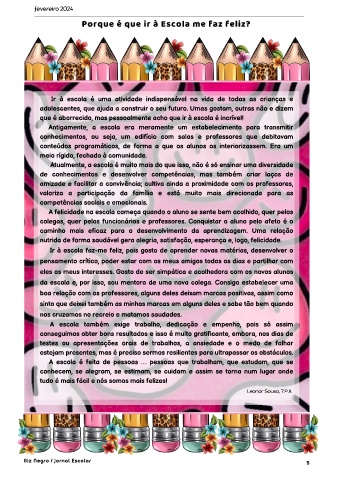 Ir à escola faz-me feliz, pois gosto de aprender novas matérias, desenvolver o