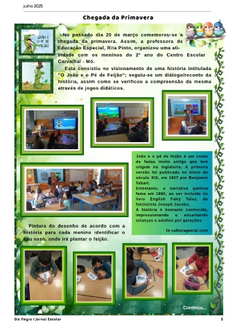 ”O João e o Pé de Feijão”; seguiu-se um diálogo/reconto da