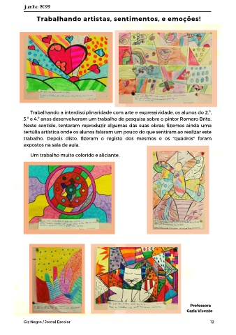 3.º e 4.º anos desenvolveram um trabalho de pesquisa sobre o pintor Romero Brito.