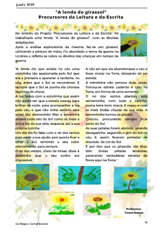 trabalhada uma lenda, “A lenda do girassol”, com as devidas