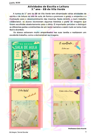 A turma do 3.º ano da EB de Vila Verde tem dinamizado várias atividades de