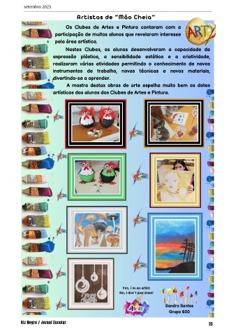 artísticos dos alunos dos Clubes de Artes e Pintura.