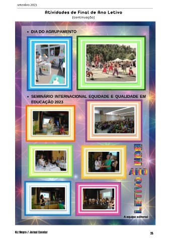 setembro 2023 Atividades de Final de Ano Letivo (continuação) DIA DO AGRUPAMENTO SEMINÁRIO INTERNACIONAL EQUIDADE E QUALIDADE EM EDUCAÇÃO 2023 A equipa editorial Giz Negro / Jornal Escolar 25
