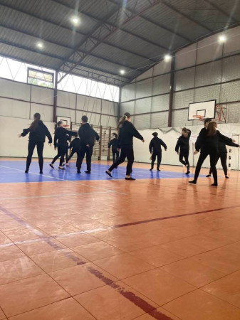 Após o intervalo, alunos e professores assistiram a um breve momento de reflexão, através de mensagens visuais, escritas e através da dança.