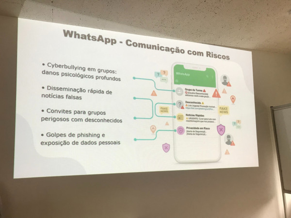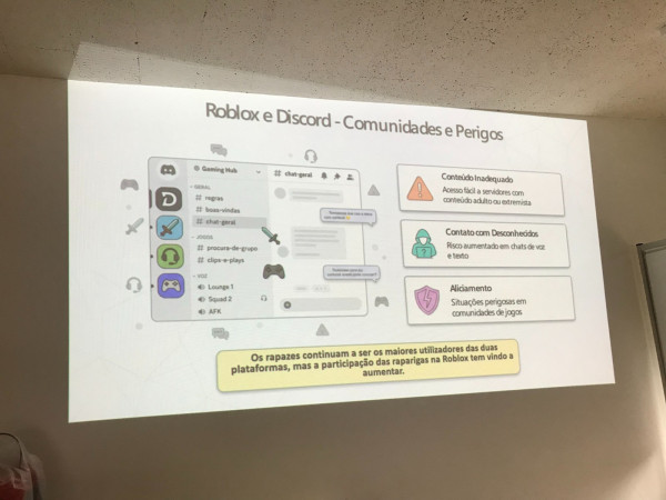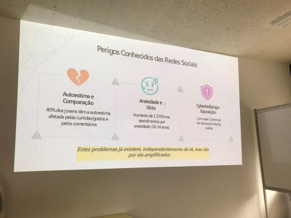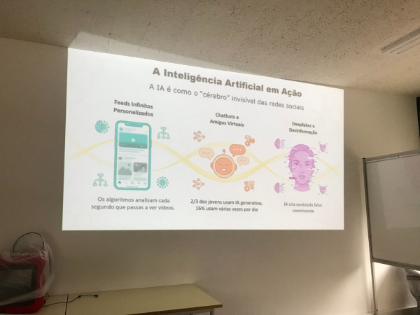 Nas restantes turmas, foram igualmente dinamizadas sessões de debate centradas nos perigos das redes sociais e na influência da Inteligência Artificial. Nestas sessões, os alunos puderam conhecer e identificar alguns dos riscos associados à utilização de diferentes plataformas digitais, como o TikTok, o Roblox, o Instagram, o Discord e o WhatsApp, riscos esses que podem ser potenciados pelo recurso à Inteligência Artificial, bem como refletir sobre estratégias conducentes a uma navegação mais segura.