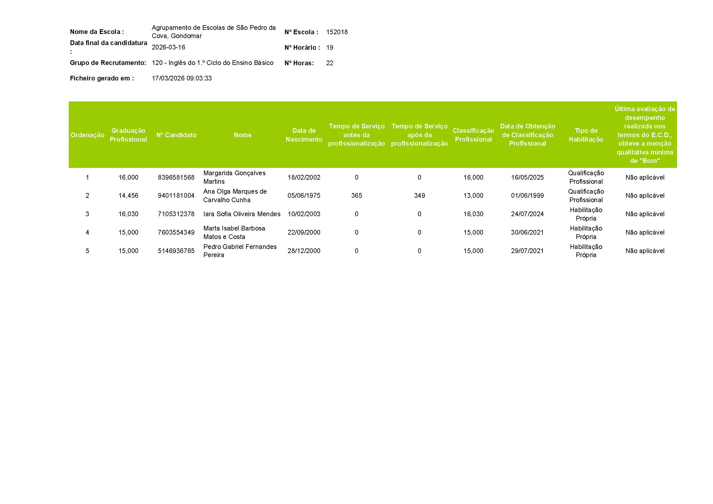Já se encontram disponíveis as listas ordenadas de graduação para o grupo 120 - Inglês do 1.º Ciclo do Ensino Básico.
