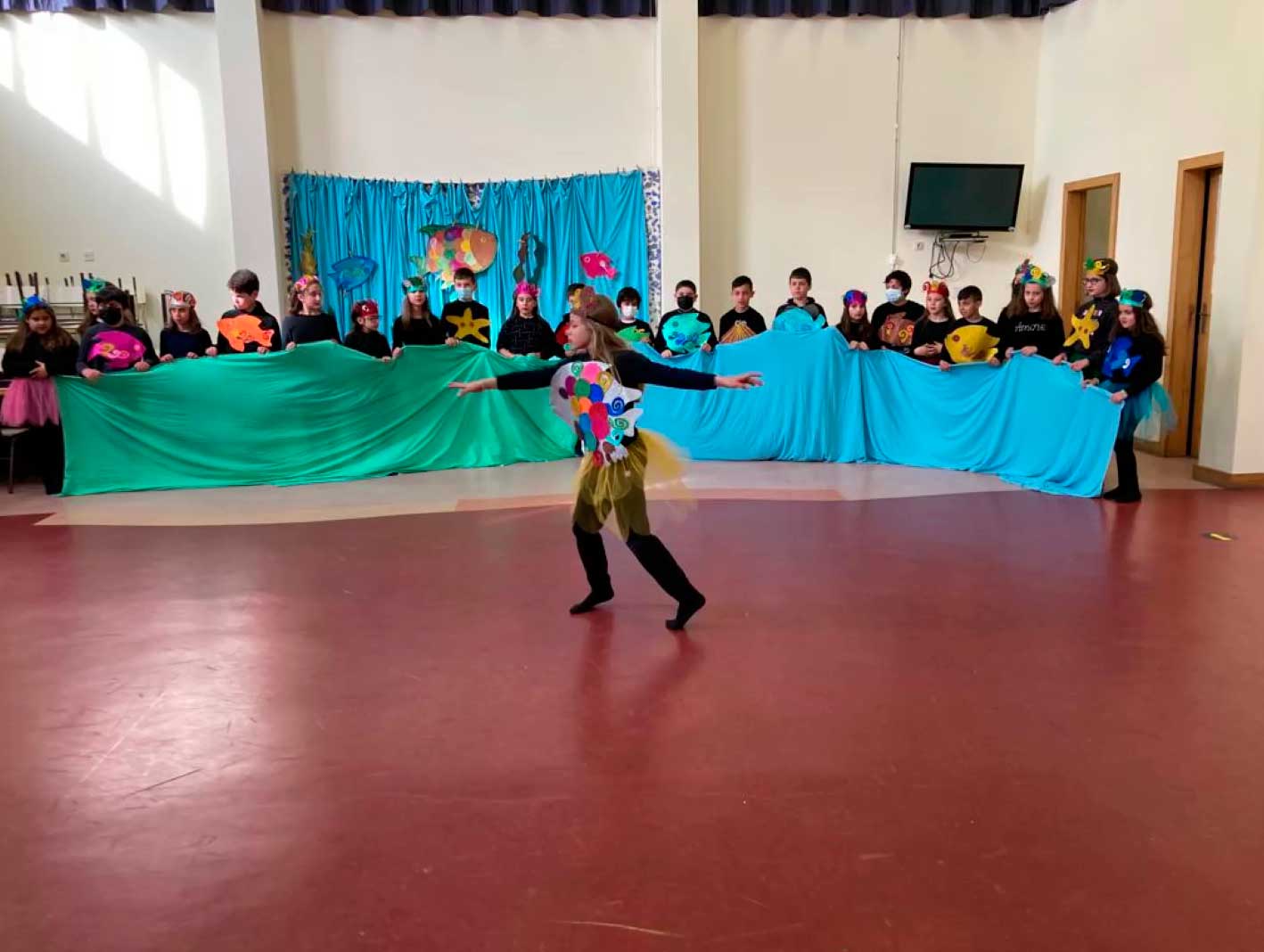 Os alunos do 4º ano apresentaram, com muita alegria, a história "Arco-Íris, o mais belo dos peixes!"