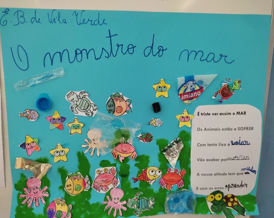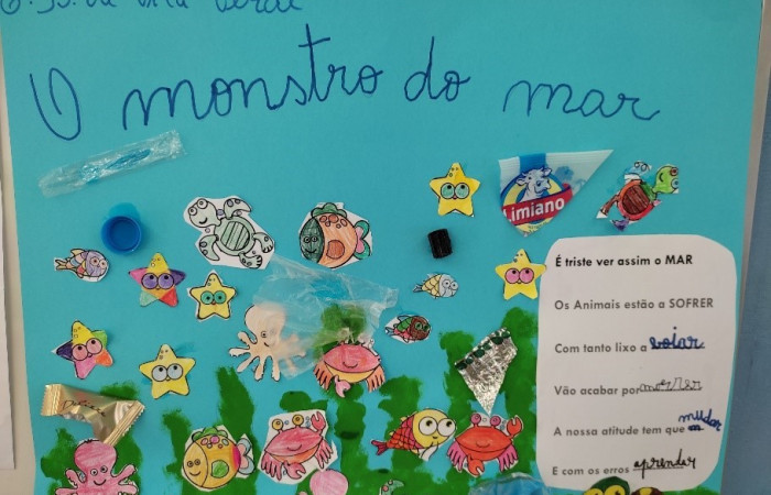 No âmbito do Projeto “Precursores da Leitura e da Escrita”, no 1º ano de escolaridade, foi realizada uma atividade em contexto de turma, cujo tema foi “Sustentabilidade/Recursos naturais/água”, fazendo uma reflexão sobre o uso dos plásticos e as consequências para os oceanos.