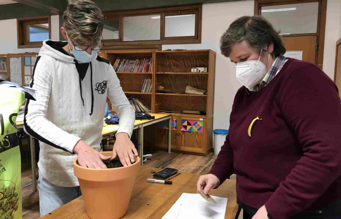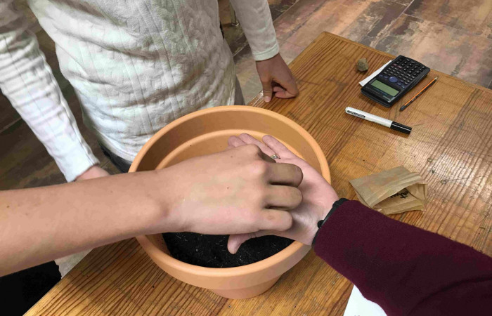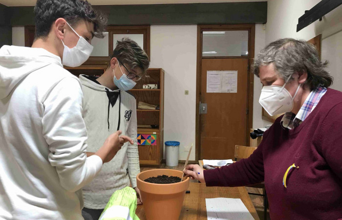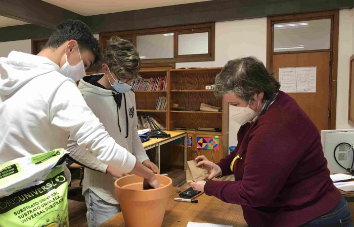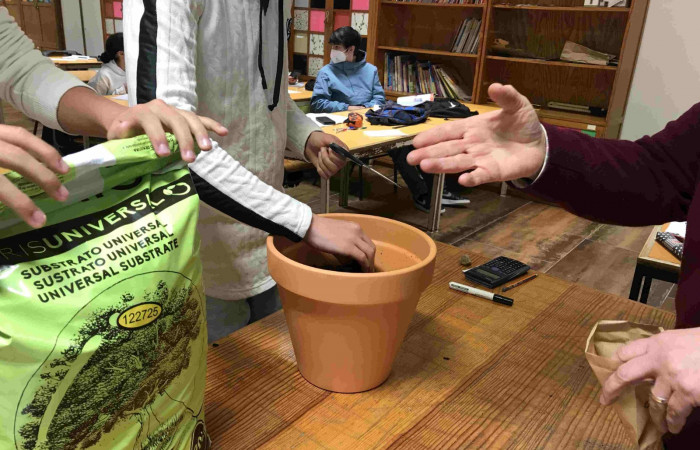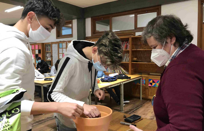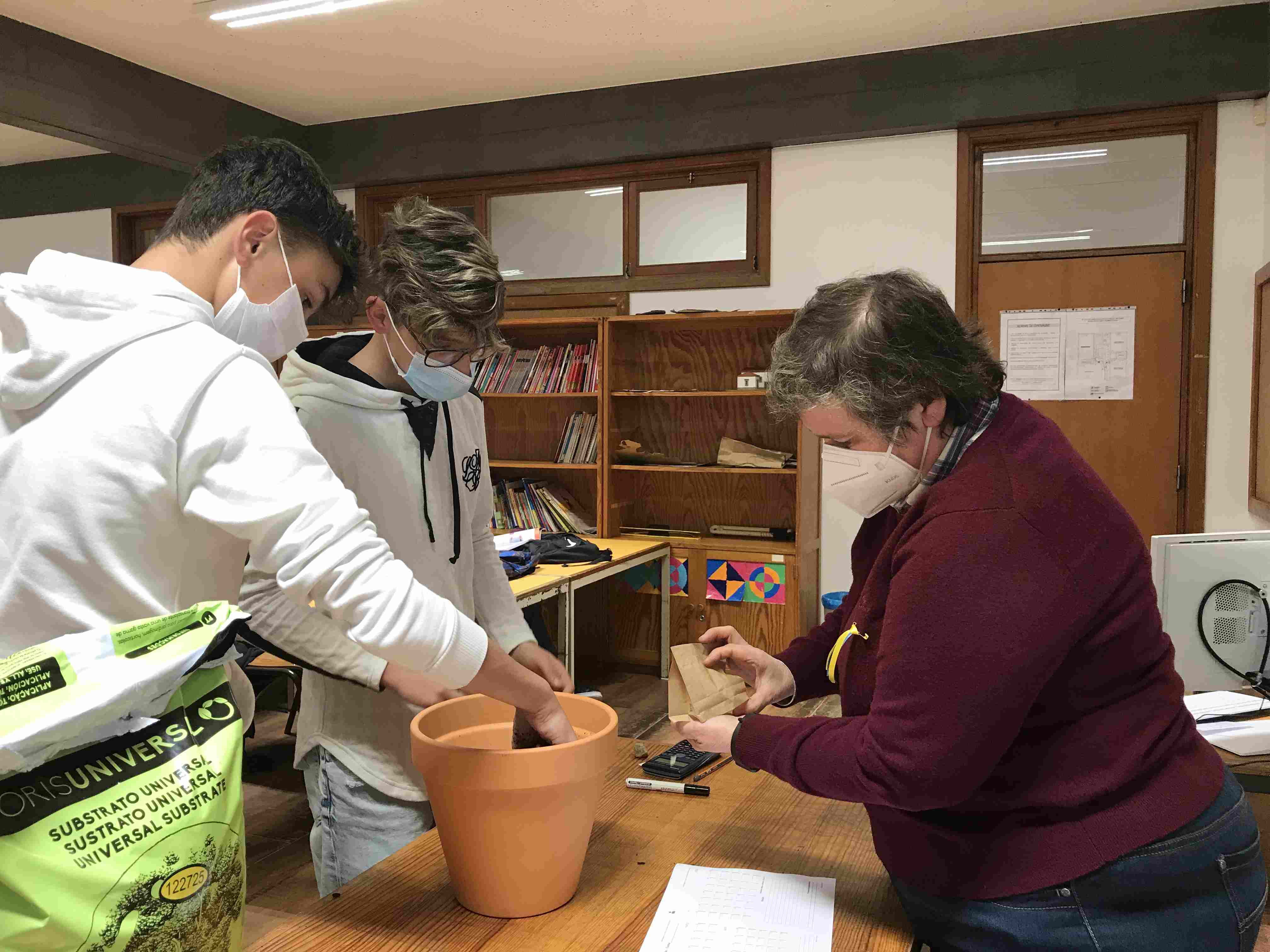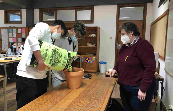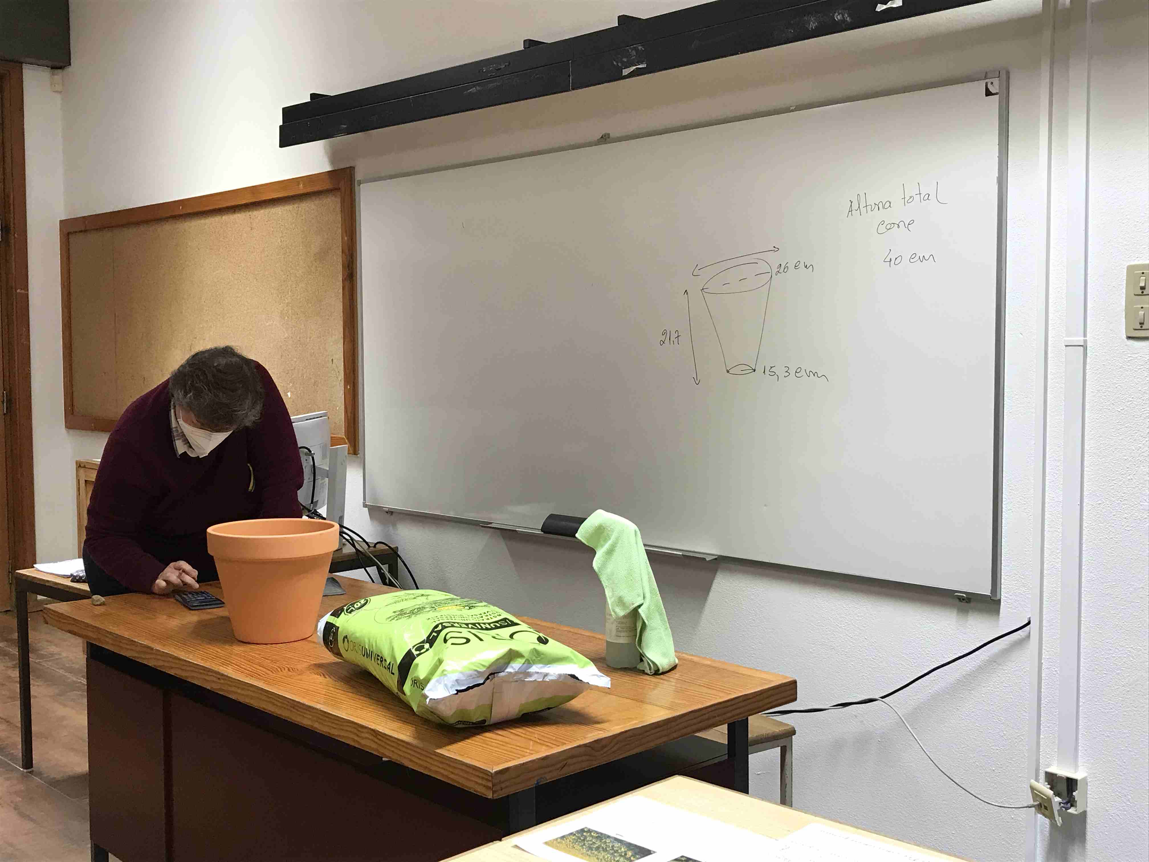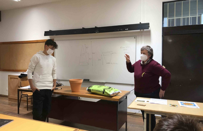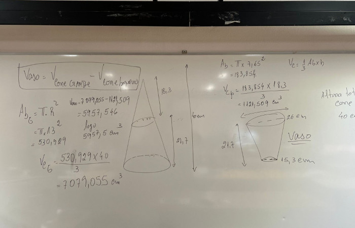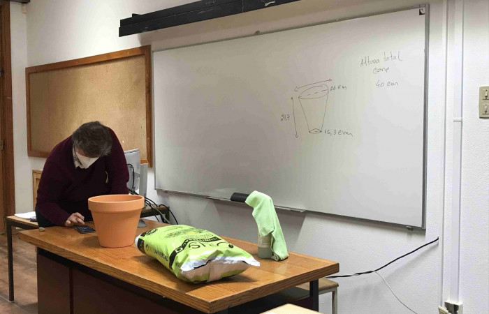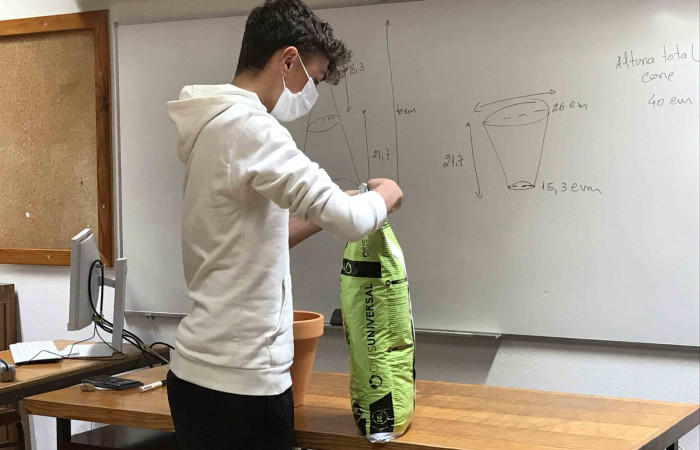 Aproveitando a realização da atividade “Sementes de Paz”, durante a aula de Matemática, a professora Laurinda Macedo desafiou os alunos do 9.ºD a calcularem o volume do vaso que iriam utilizar para semear um girassol (flor da Ucrânia).