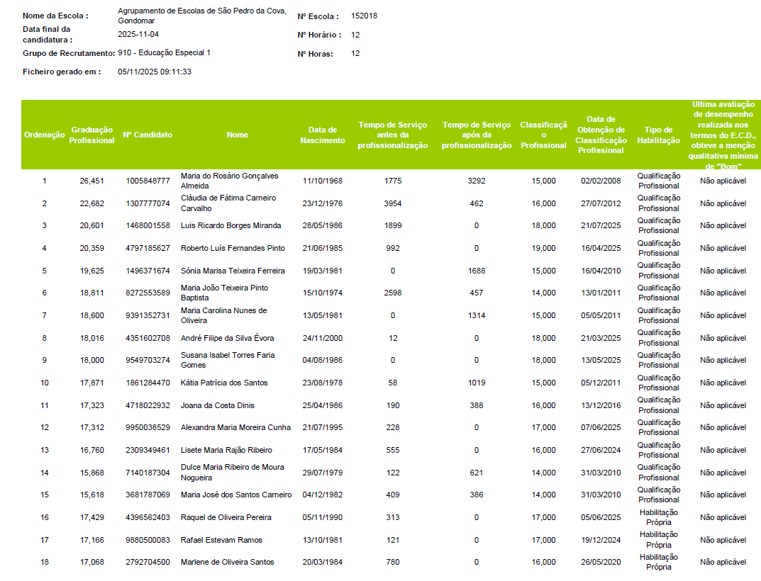 Já se encontram disponíveis as listas ordenadas de graduação para o grupo 910 - Educação Especial 1.