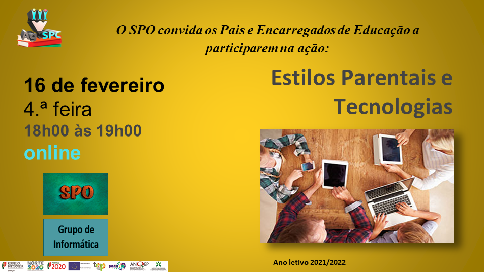Com este tema, o SPO & o Grupo de Informática irão dinamizar uma sessão online para Pais e Encarregados de Educação, onde poderão colocar questões e partilhar experiências.