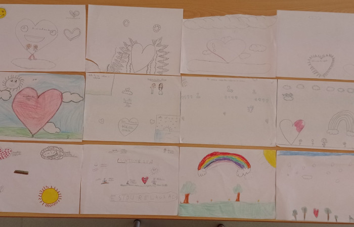 A Psicóloga ofereceu-lhes um ABRAÇO, os alunos retribuíram com desenhos sobre o que sentiram e experienciaram com a meditação.