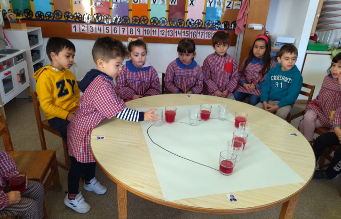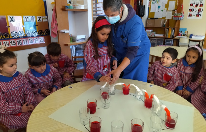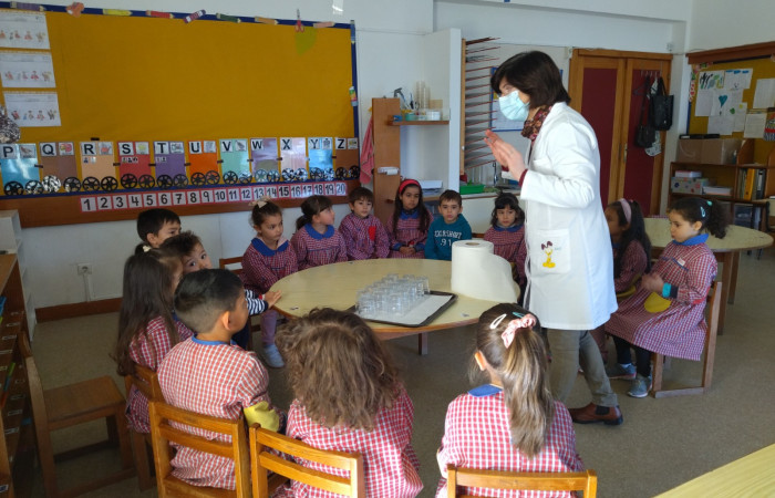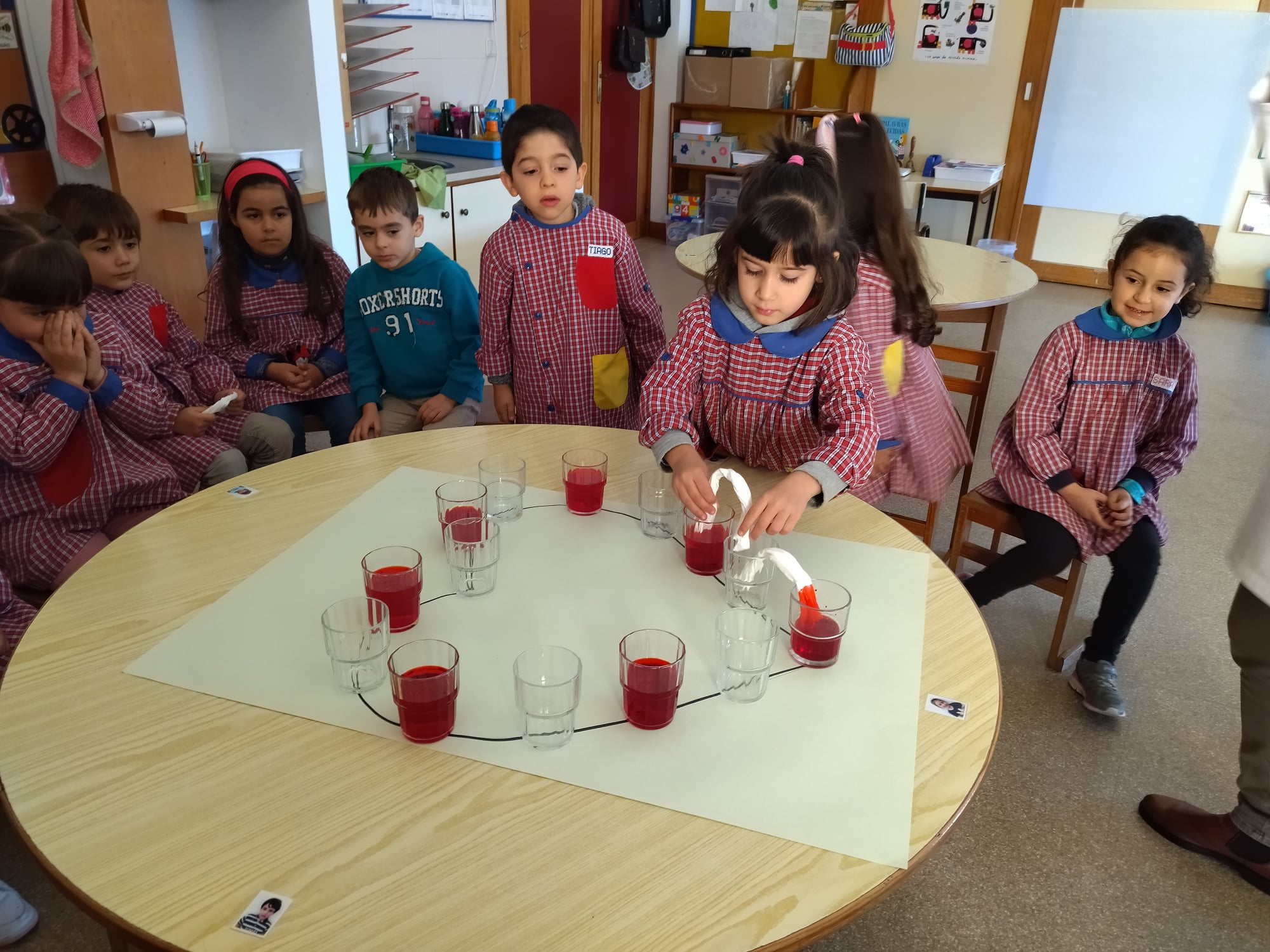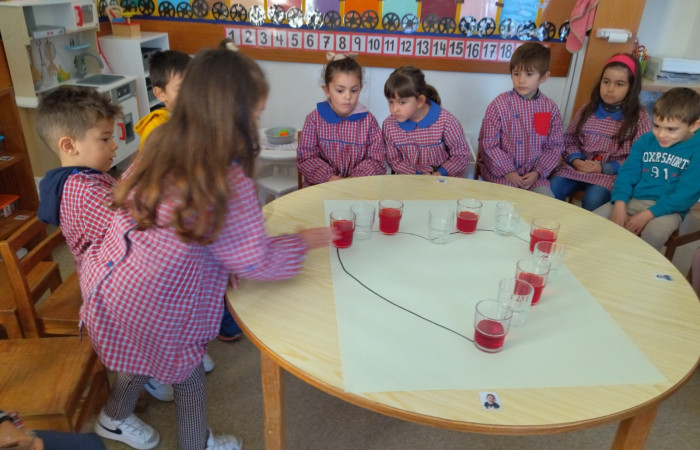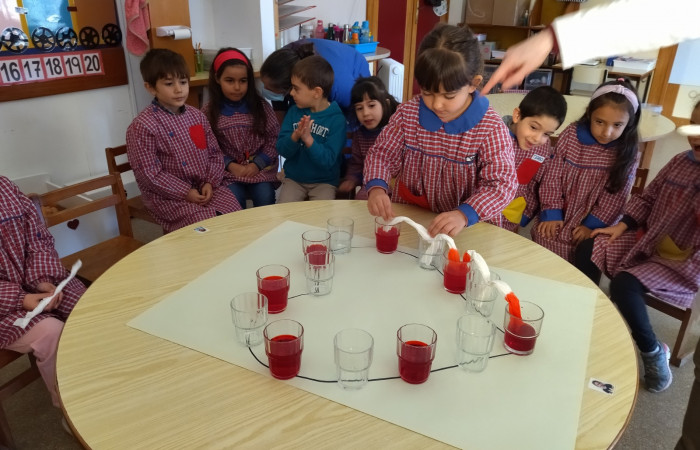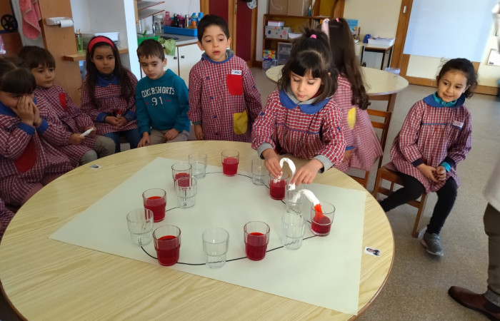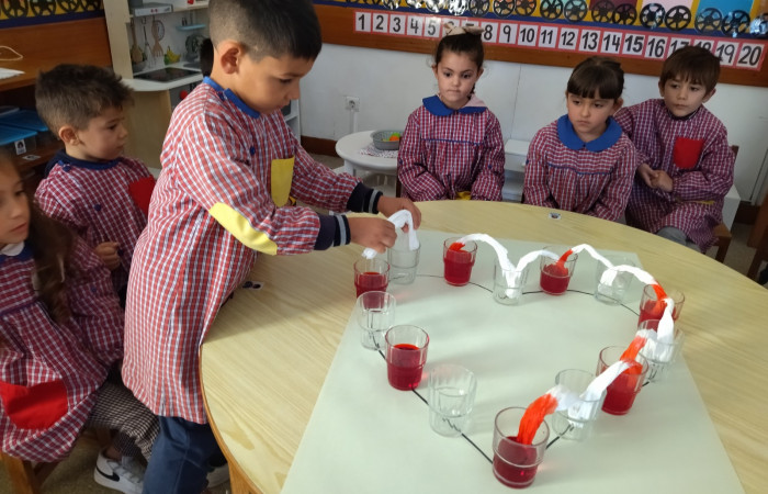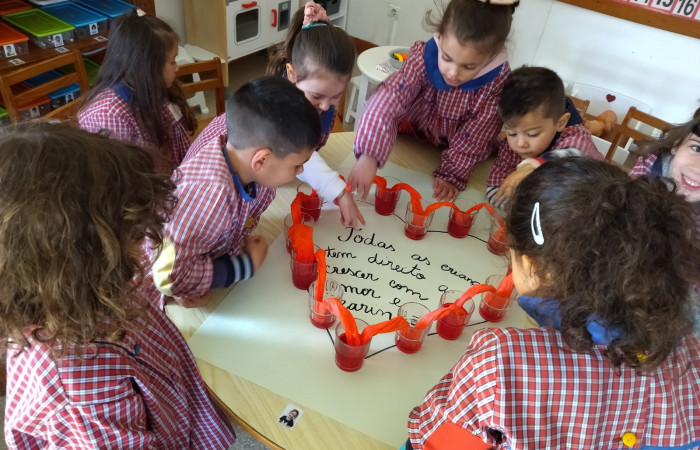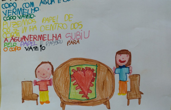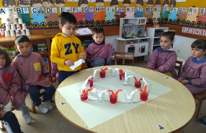 No âmbito do projeto "Saber Fazer Experimentando", as crianças do JI de Belo Horizonte, realizaram uma atividade experimental, onde observaram uma das propriedades da água, a sua capilaridade ou seja a capacidade que a água tem de se deslocar de um recipiente para outro através de materiais porosos (usamos papel de cozinha). Esta atividade foi transversal, abordando também a temática dos direitos da criança.