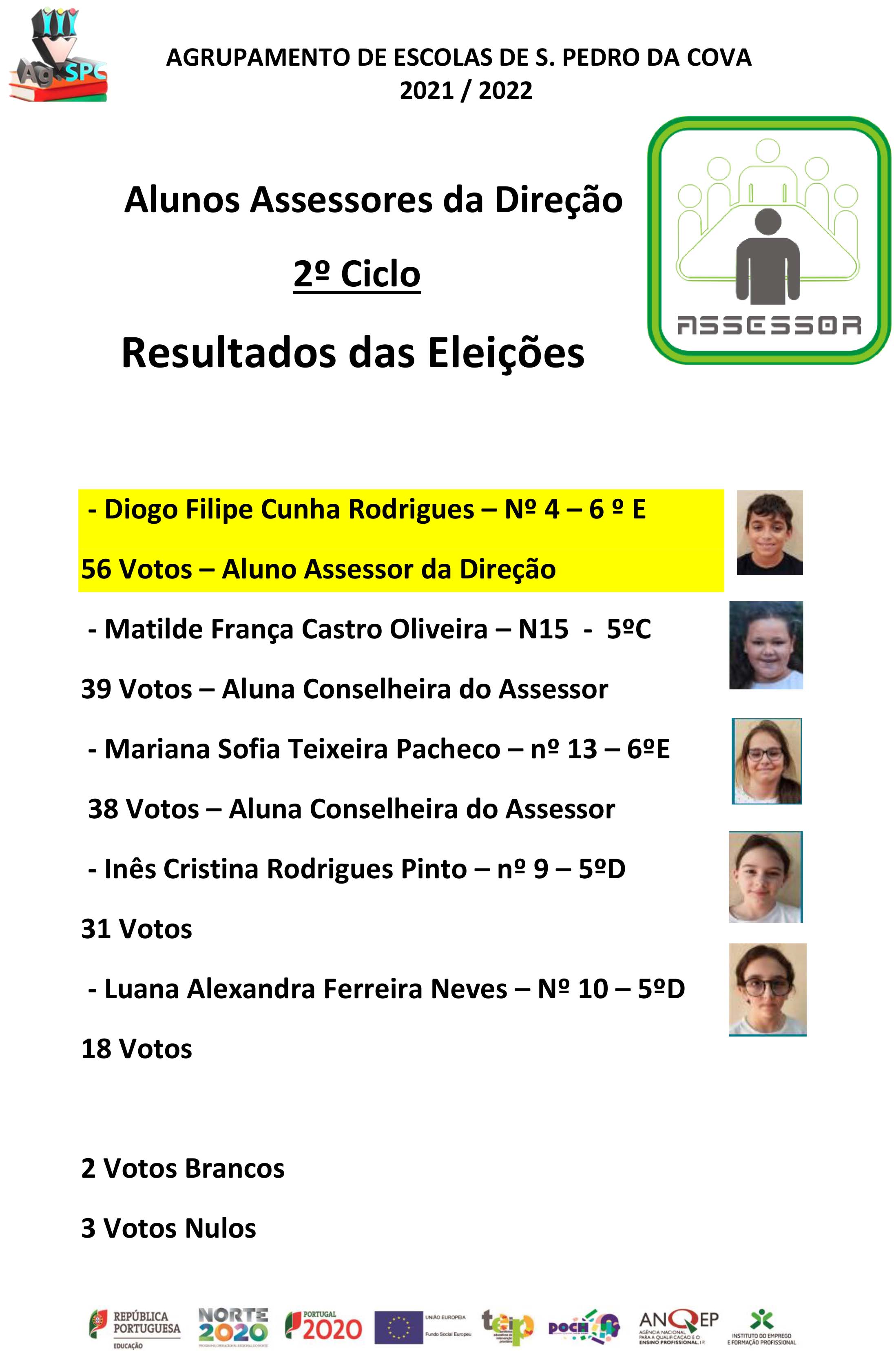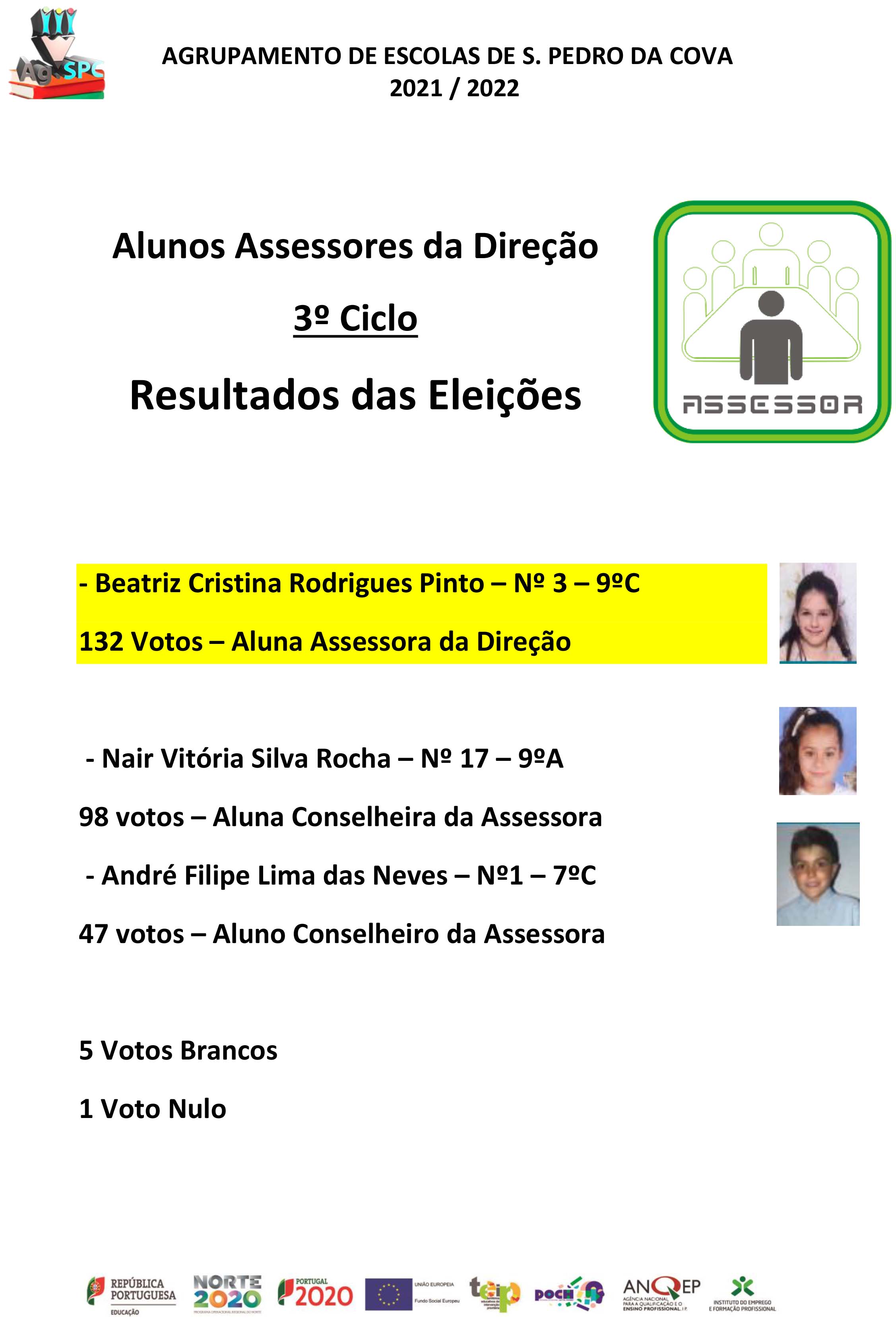 Informa-se toda a comunidade educativa que se encontram disponíveis os resultados eleitorais "Alunos Assessores da Direção 2021/2022".