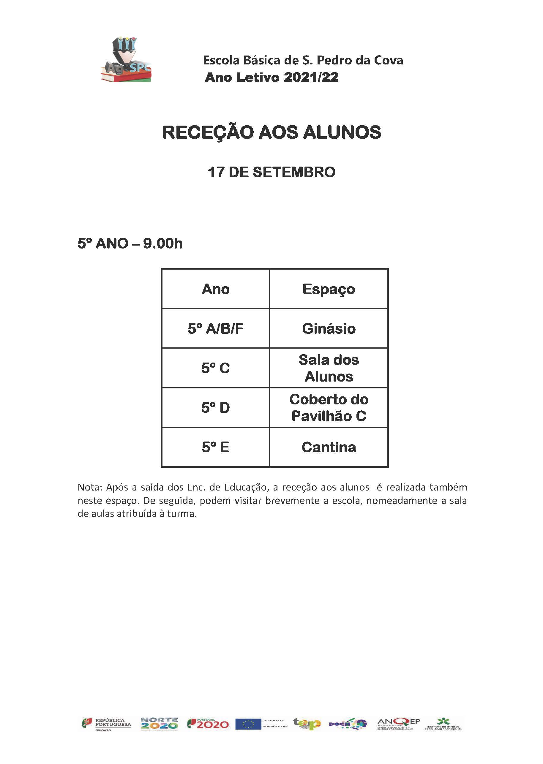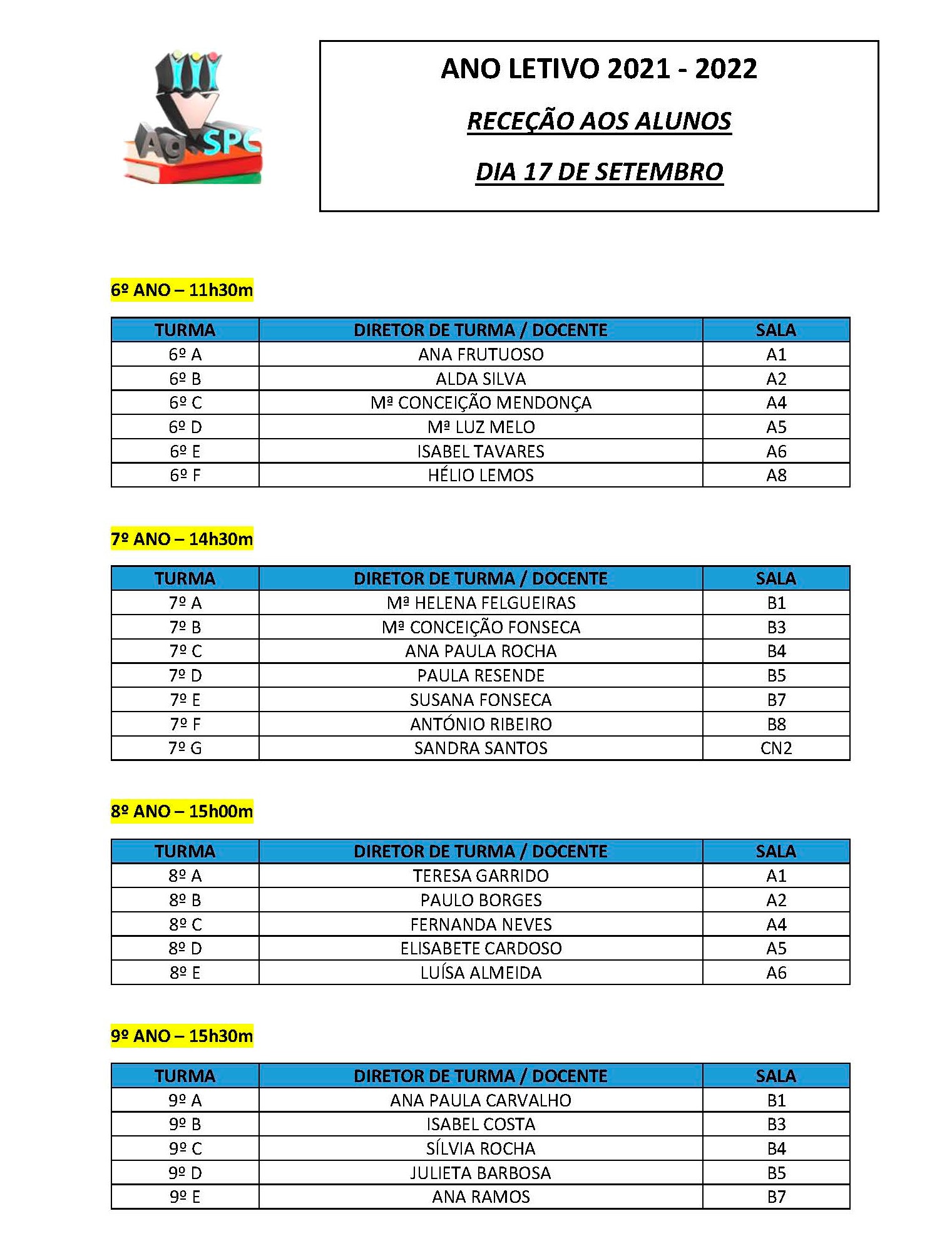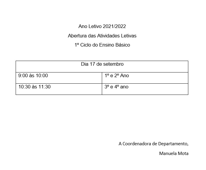 Informa-se toda a comunidade educativa que se encontra disponível a distribuição de salas para a receção aos alunos.