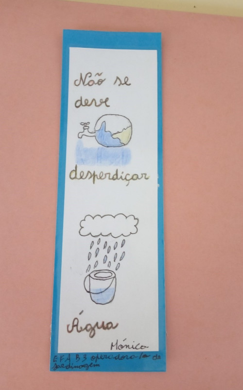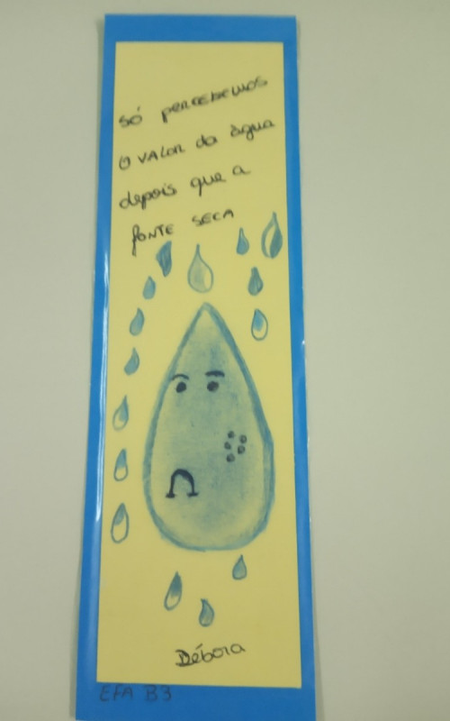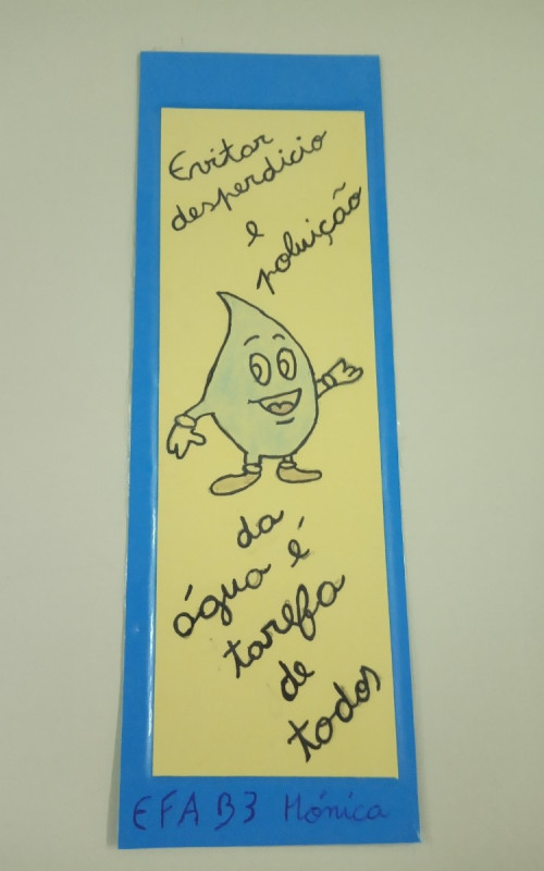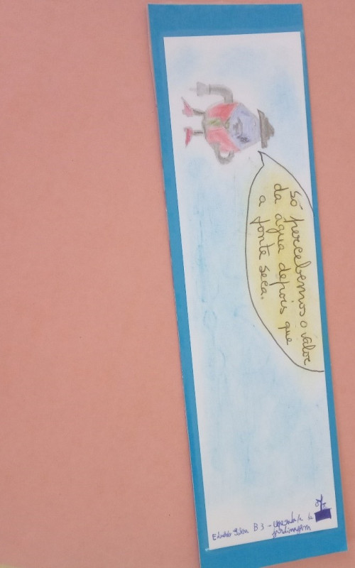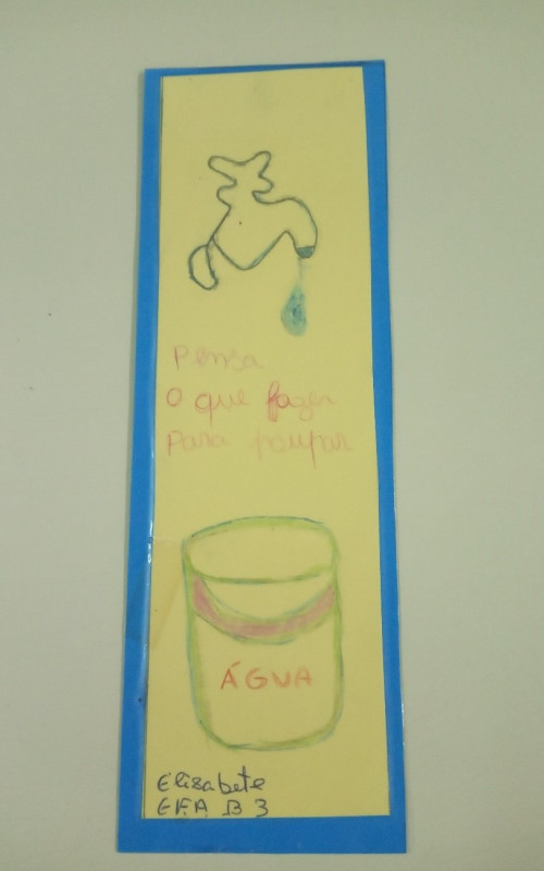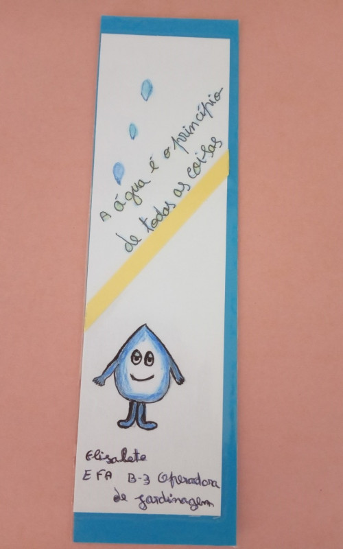 Os Formandos elaboraram marcadores de leitura apelando para economizar água e formas de reutilização da mesma.