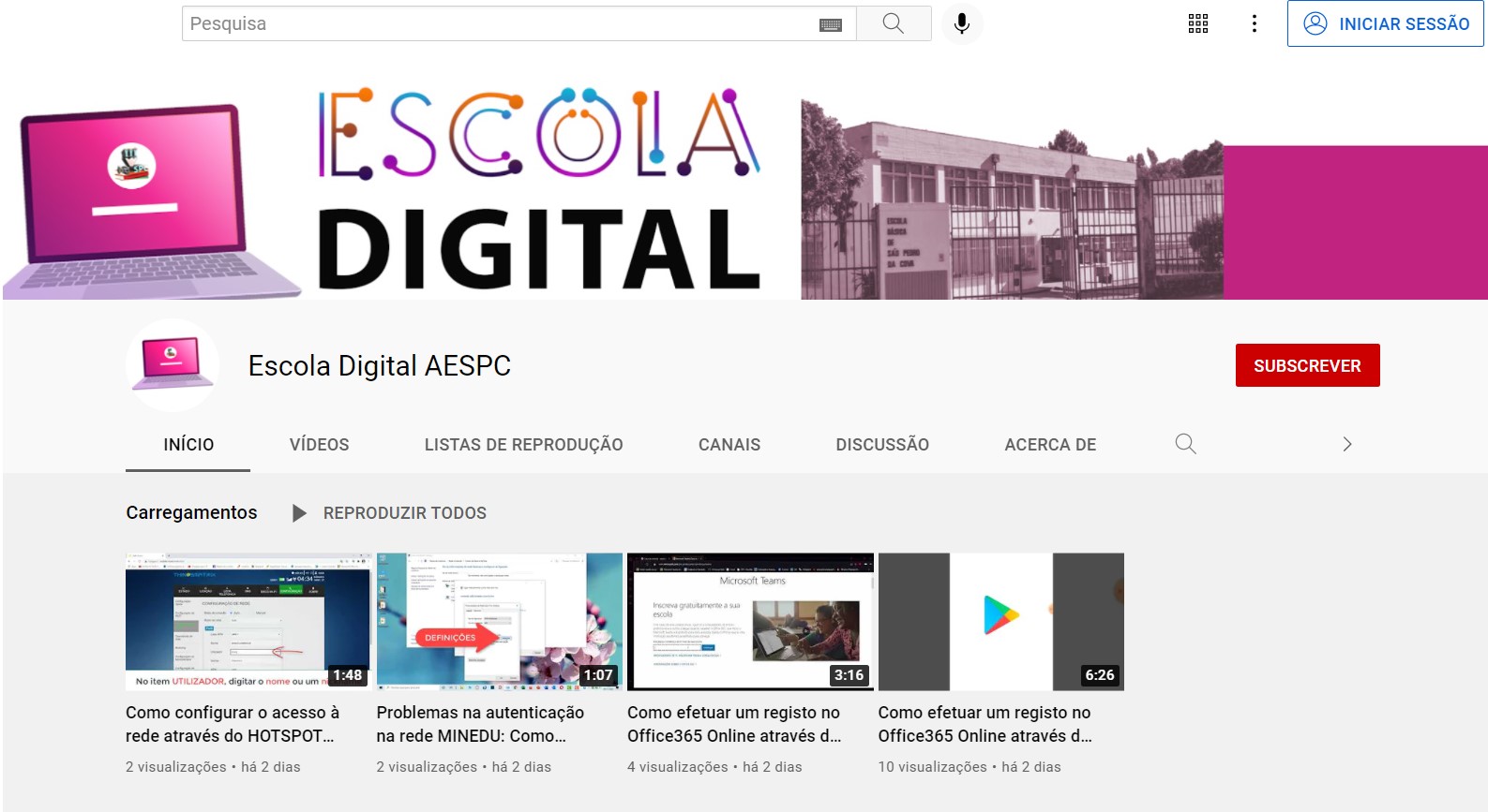 Informa-se toda a comunidade educativa que foi criado um canal na plataforma YOUTUBE, designado por ESCOLA DIGITAL, que contêm tutoriais sobre resolução de problemas, inscrição em plataformas, configuração de rede, entre outros.
