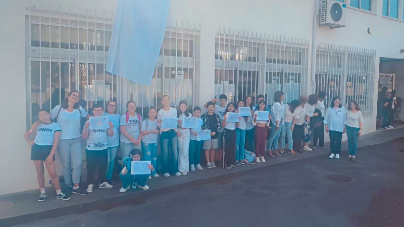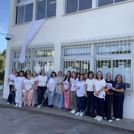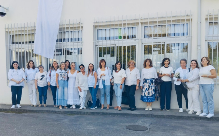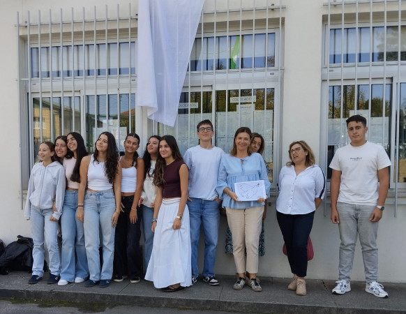Assim, na semana de 21 a 26 de setembro penduramos um tecido branco na janela do pavilhão administrativo (Escola EB 2,3), para o Dia Internacional da Paz. Convidamos toda a COMUNIDADE ESCOLAR - ALUNOS, DOCENTES, NÃO DOCENTES, a participar numa fotografia coletiva junto ao mesmo, em que trouxeram uma t'shirt Branca. Também foi divulgado junto do departamento de cidadania a planificação: https://escolas.unicef.pt/wp-content/uploads/2025/09/UNICEF_B9_Janela-Branca-pela-Paz_2025.pdf; e sugerido a atividade “Corrente de Paz". Apresentamos os trabalhos que foram realizados de mãos dadas pela PAZ, representando simbolicamente a ligação entre as pessoas e a importância de construirmos a PAZ em conjunto.