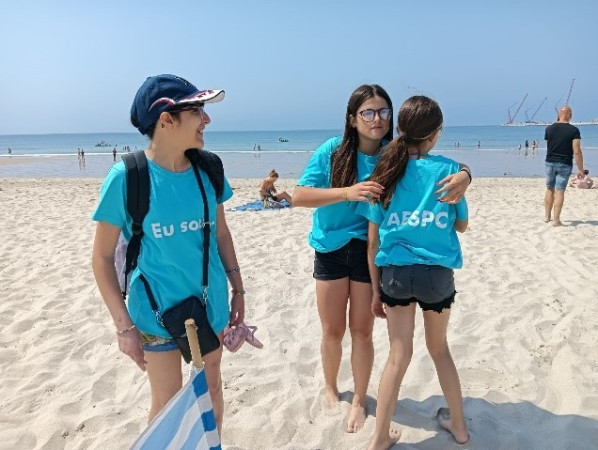 Chegam à praia e parece apenas mais um grupo de jovens que vêm tomar um banho e apanhar um pouco de sol. Só que não! Toda a gente em volta repara que “aquele Grupo é diferente”, quando começam a vestir as suas T-shirts azuis. No peito “Eu sou…”, nas costas “AESPC”. Será um grupo de atletas? Vólei de praia? Mas não têm nenhuma bola… vão jogar um jogo estranho, com sacos de lixo grandes e luvas improvisadas nas mãos!!