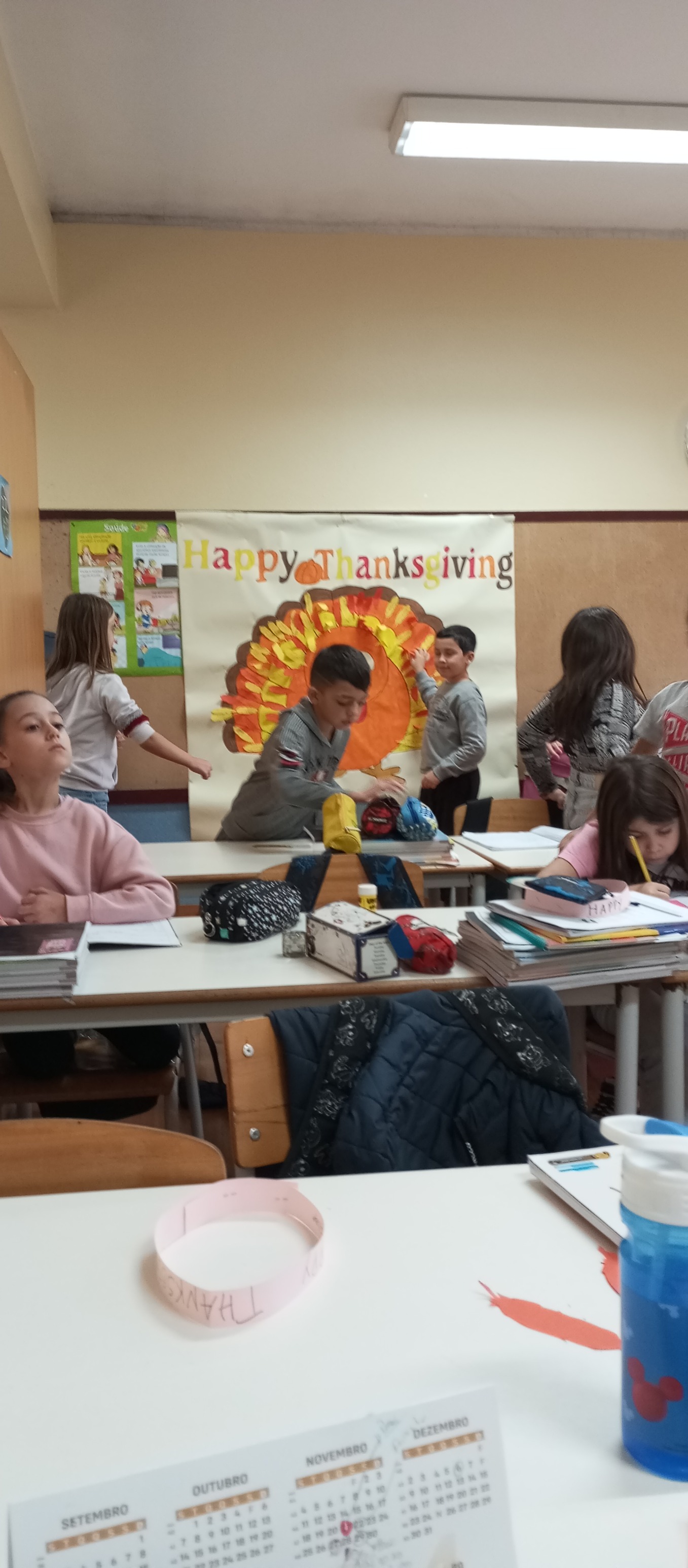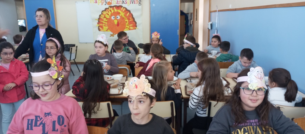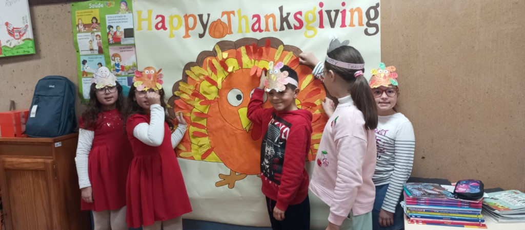 Na disciplina de Inglês e no âmbito da comemoração do "Thanksgiving Day" correspondente ao nosso "Dia de Ação de Graças", as turmas de 3º e 4º anos da EB1 de Silveirinhos elaboraram um cartaz alusivo ao tema e uma coroa para colocar na cabeça. Realçou-se a importância de agradecer o que de bom temos na vida.