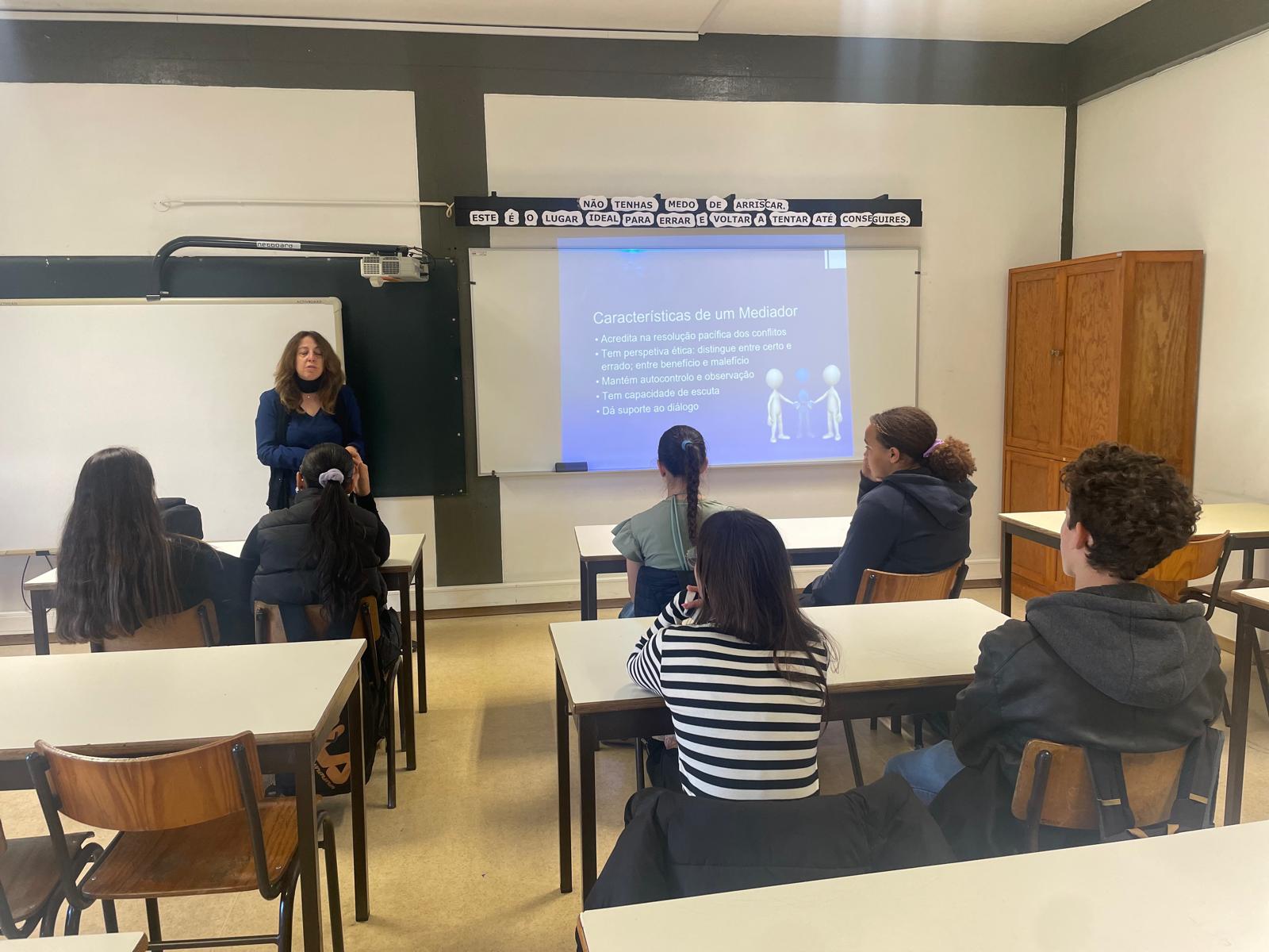 O Projeto "Alunos-Mediadores de Escola" desenvolvido pelo SPO/EAAF, desde há 4 anos letivos para cá, tem sido abraçado pelos alunos do 3.º Ciclo. O objetivo principal é desenvolver a Cidadania através do desempenho autónomo de um papel real - de promoção e de valorização dos comportamentos positivos entre colegas, com foco nos intervalos, e com o intuito de melhorar o ambiente escolar! No dia 12 de novembro os Mediadores passaram por uma formação inicial, que lhes conferiu competências para intervir na prevenção e na ajuda ao próximo e no combate ao bullying!