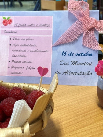 No dia 15 de outubro evocou-se, na escola sede, o Dia da Saúde da Mama: vigiar e cuidar. A comunidade escolar foi convidada a deixar mensagens alusivas e a degustar framboesas, a fruta “rosa” que nutre e protege. Fez-se assim a ponte para o Dia da Alimentação – 16 de outubro. Pequenos gestos que nos lembram a importância de velar pela nossa saúde e pela saúde de quem nos é próximo.