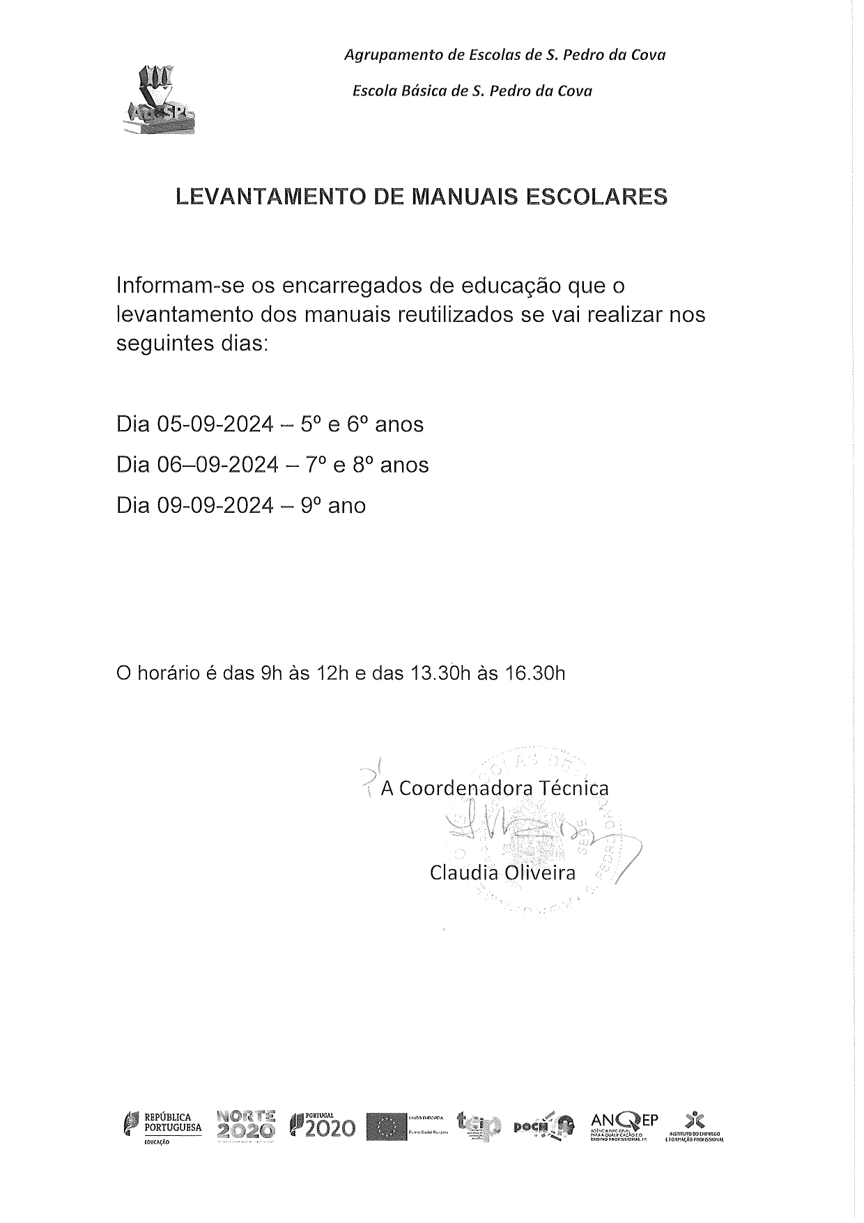 Já se encontra disponível o calendário para levantamento dos manuais escolares para o presente ano letivo.