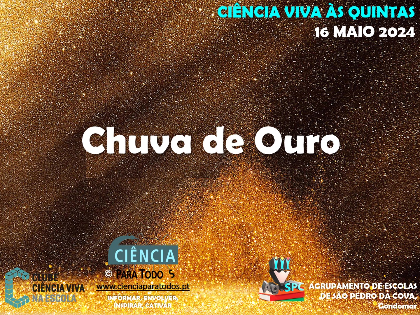Foi assim, com este inspirador e criativo preâmbulo, que as atividades do Clube CVnE da tarde de 16 de maio começaram numa bela conversa sobre a beleza e o fascínio da Química. Uma das atividades que faz brilhar o olhar de miúdos e graúdos é a conhecida experiência “Chuva de Ouro”. Só o nome desperta a curiosidade e retém a atenção e o interesse em “saber mais” e fazer acontecer mais uma sessão do Clube CVnE pelos “Jovens Exploradores da Ciência” deste clube. Munidos de curiosidade e muito entusiasmo, e com os materiais/equipamentos e reagentes necessários, estes jovens exploradores “meteram as mãos na massa” seguindo as regras de segurança e do trabalho laboratorial. Todos queriam fazer “Chuva de Ouro”! Após a precipitação do sólido amarelo (iodeto de chumbo), procederam à sua solubilização por aquecimento da mistura anteriormente obtida. Por arrefecimento à temperatura ambiente, a solubilidade do sólido amarelo diminui e começa a recristalização lenta do iodeto de chumbo. Por isso, podem ser visualizados pequenos cristais brilhantes amarelos que dão uma aparência de “chuva de ouro” espetacular!