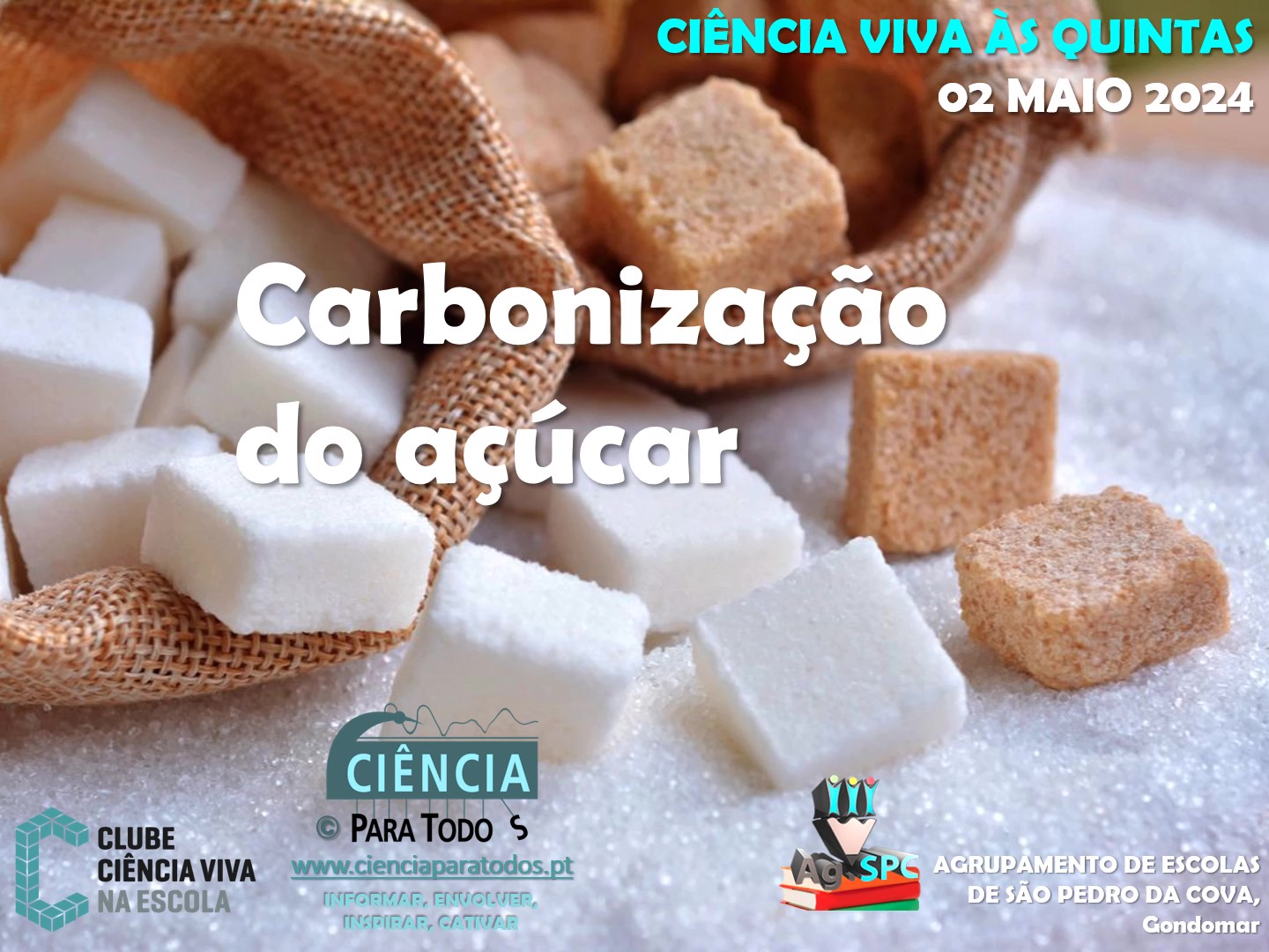 Foi, assim, neste contexto, que a curiosidade, o interesse e a motivação para “saber mais” dos “Jovens Cientistas” do Clube Ciência Viva na Escola se mantiveram ao rubro. Com os diversos materiais e equipamentos bem-acondicionados em tabuleiros, estes exploradores da ciência saíram do laboratório e foram realizar a carbonização do açúcar num local bem arejado. Foi enorme a surpresa e foram muitas as questões que surgiram sobre o que estava a acontecer dentro do gobelé em cima da mesa de pedra no jardim da escola. O que aconteceu? O que é esta estrutura negra que se formou? Que bom momento para conversar sobre as transformações químicas!! Afinal, elas andam por todo o lado e há vários fatores ou agentes que levam à sua ocorrência!
