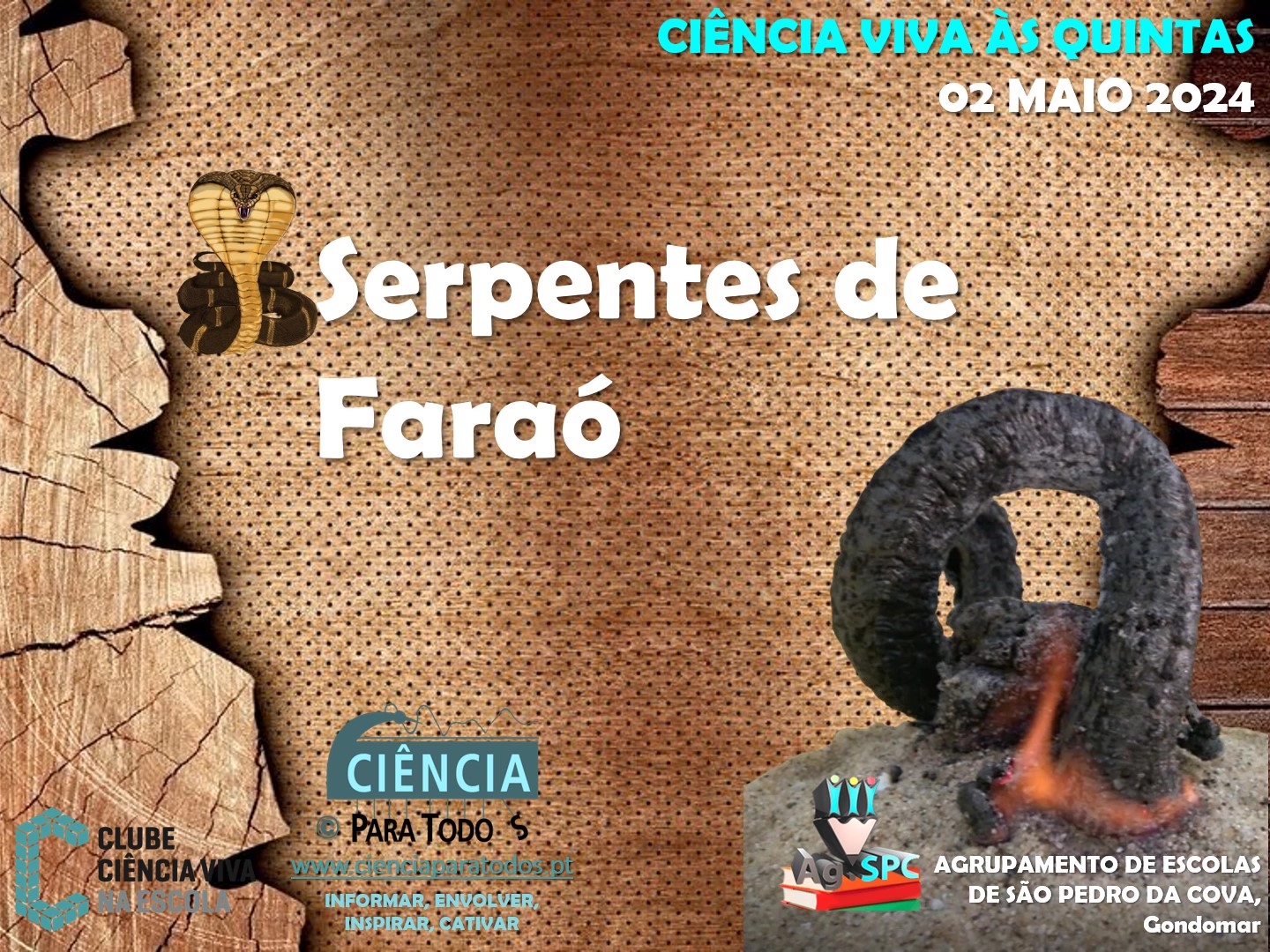 A atividade “Serpentes de Faraó” é uma forma interessante e curiosa de explorar a ocorrência de reações químicas, isto é, a transformação de um ou mais materiais (reagentes) em outros (produtos da reação). “Serpente de Faraó” é o nome dado a uma experiência clássica de Química em que se queima o tiocianato de mercúrio (II). A partir de uma pequena amostra, começam a formar-se estruturas semelhantes a cobras de cinzas. No entanto, é uma experiência que não pode ser realizada em laboratórios escolares, devido à toxicidade do tiocianato de mercúrio (II). Assim sendo, os “Jovens Exploradores da Ciência” do Clube CVnE tiveram de recorrer a outros materiais de uso comum e de perigosidade reduzida, tais como, sacarose (açúcar), bicarbonato de sódio e etanol.