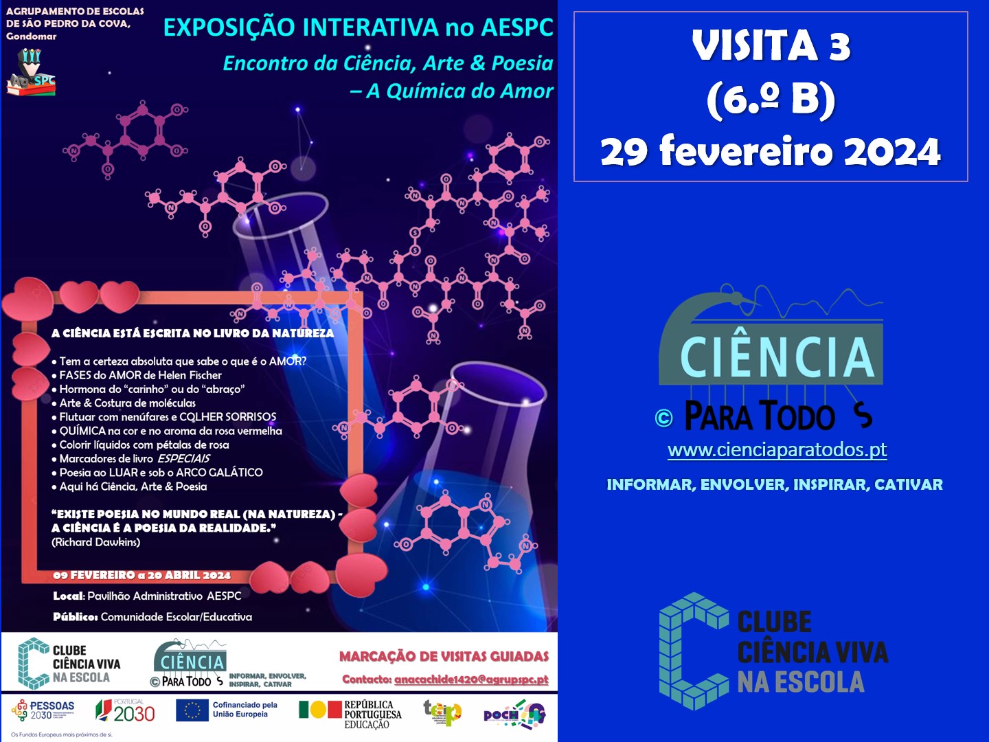 Visita dos alunos do 6.º B à Exposição “Encontro da CIÊNCIA, ARTE & POESIA - A Química do Amor” acompanhados pela Professora Maria da Luz.