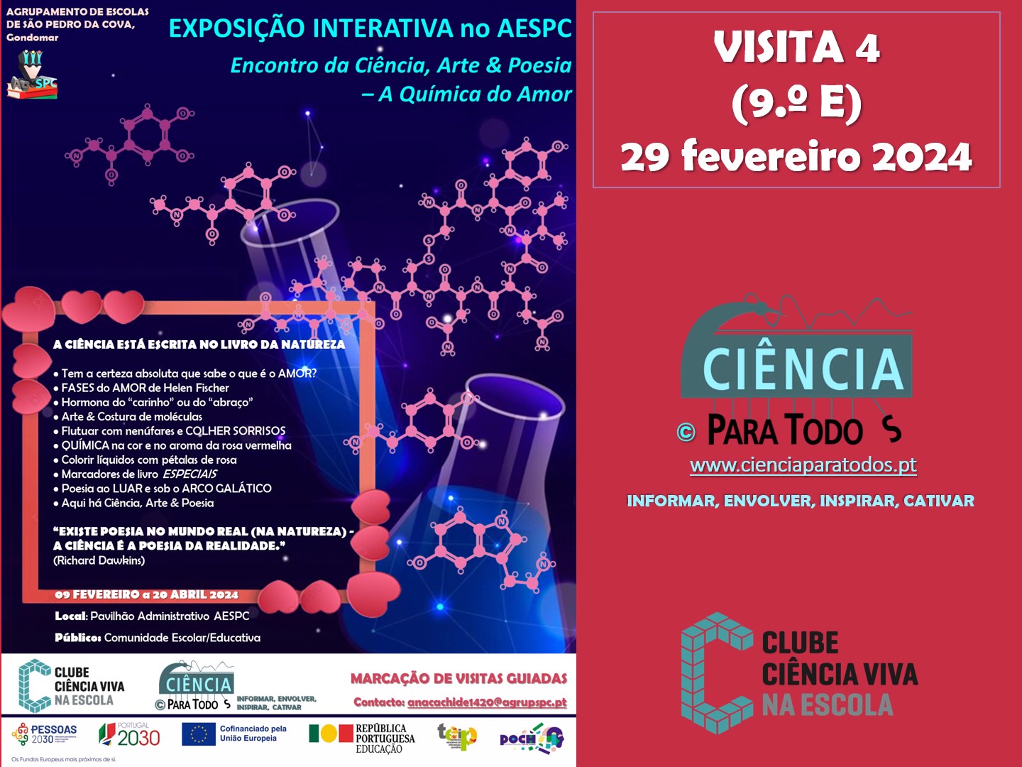 Visita dos alunos do 9.º E à Exposição “Encontro da CIÊNCIA, ARTE & POESIA - A Química do Amor” acompanhados pela Professora Lurdes Teixeira.