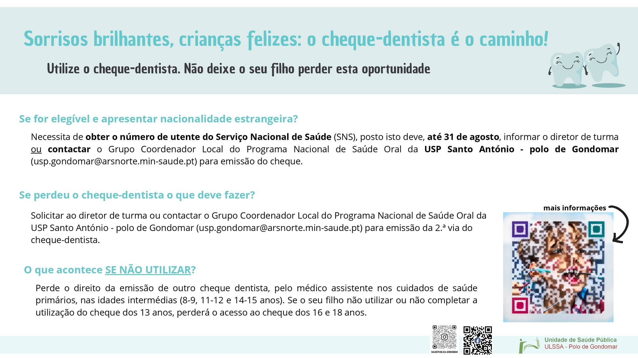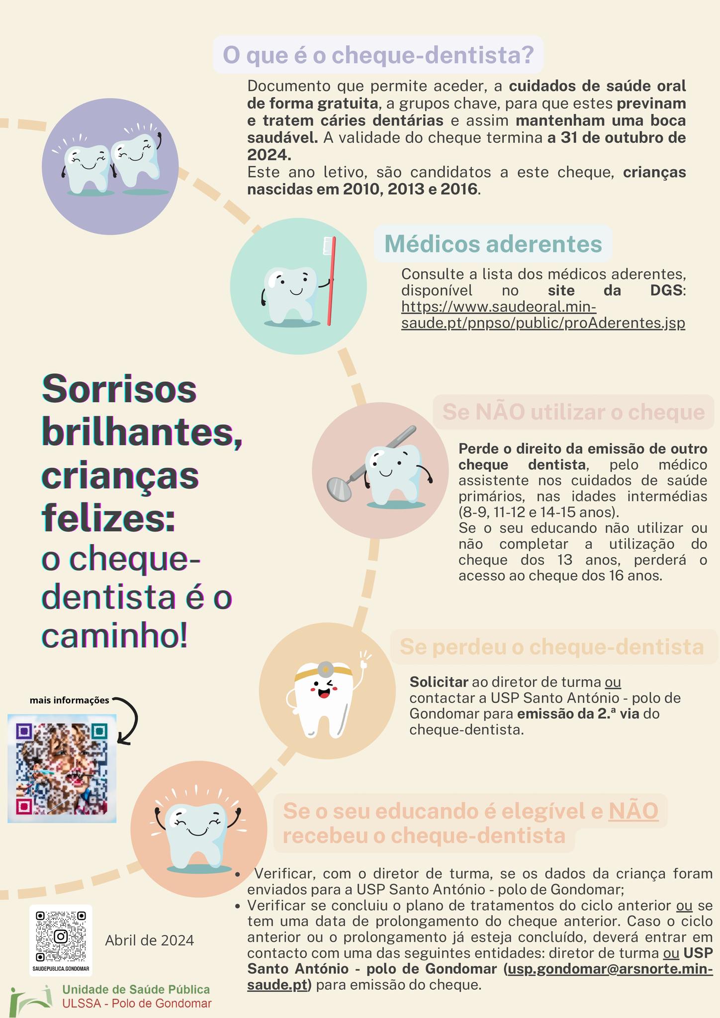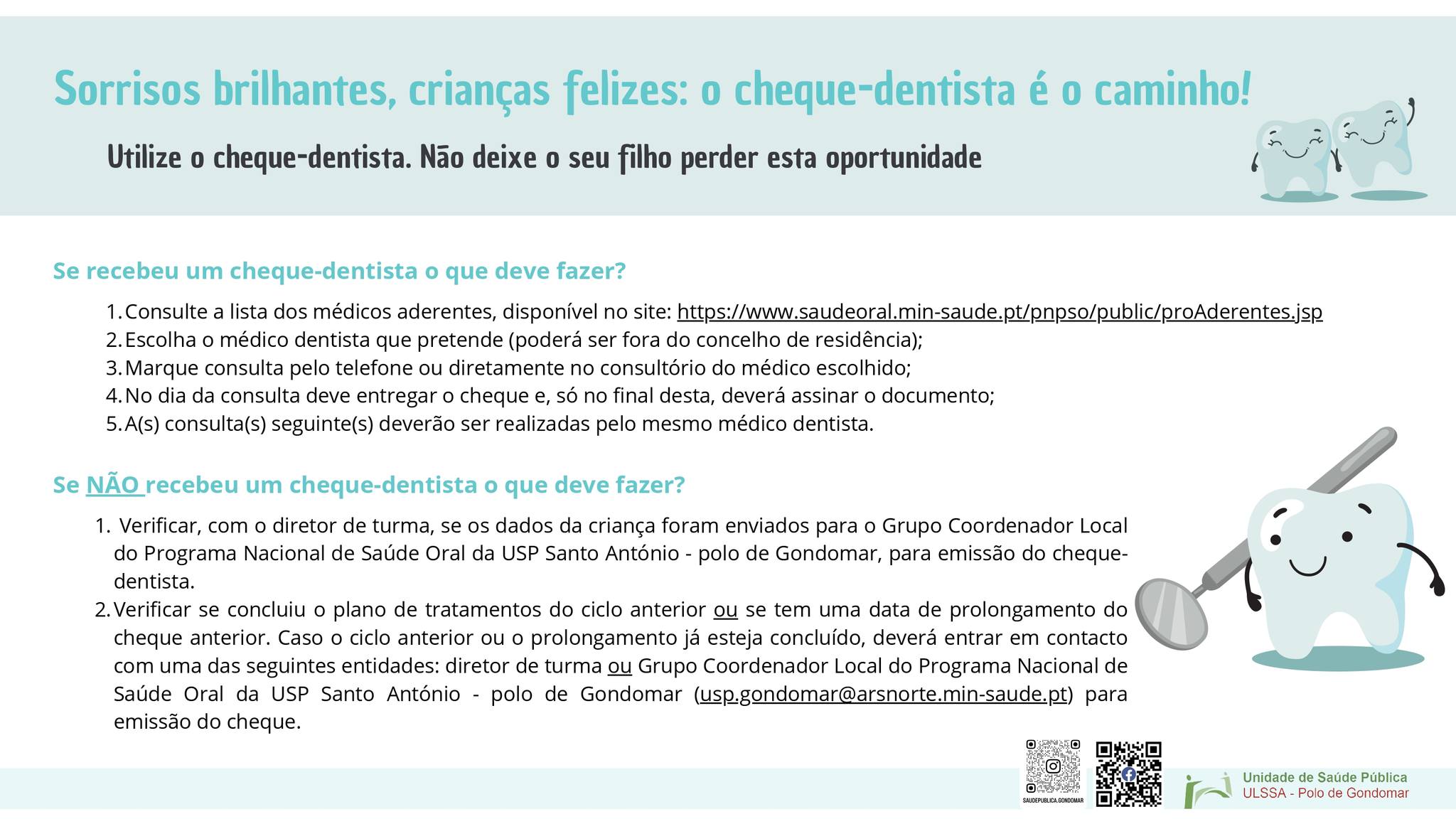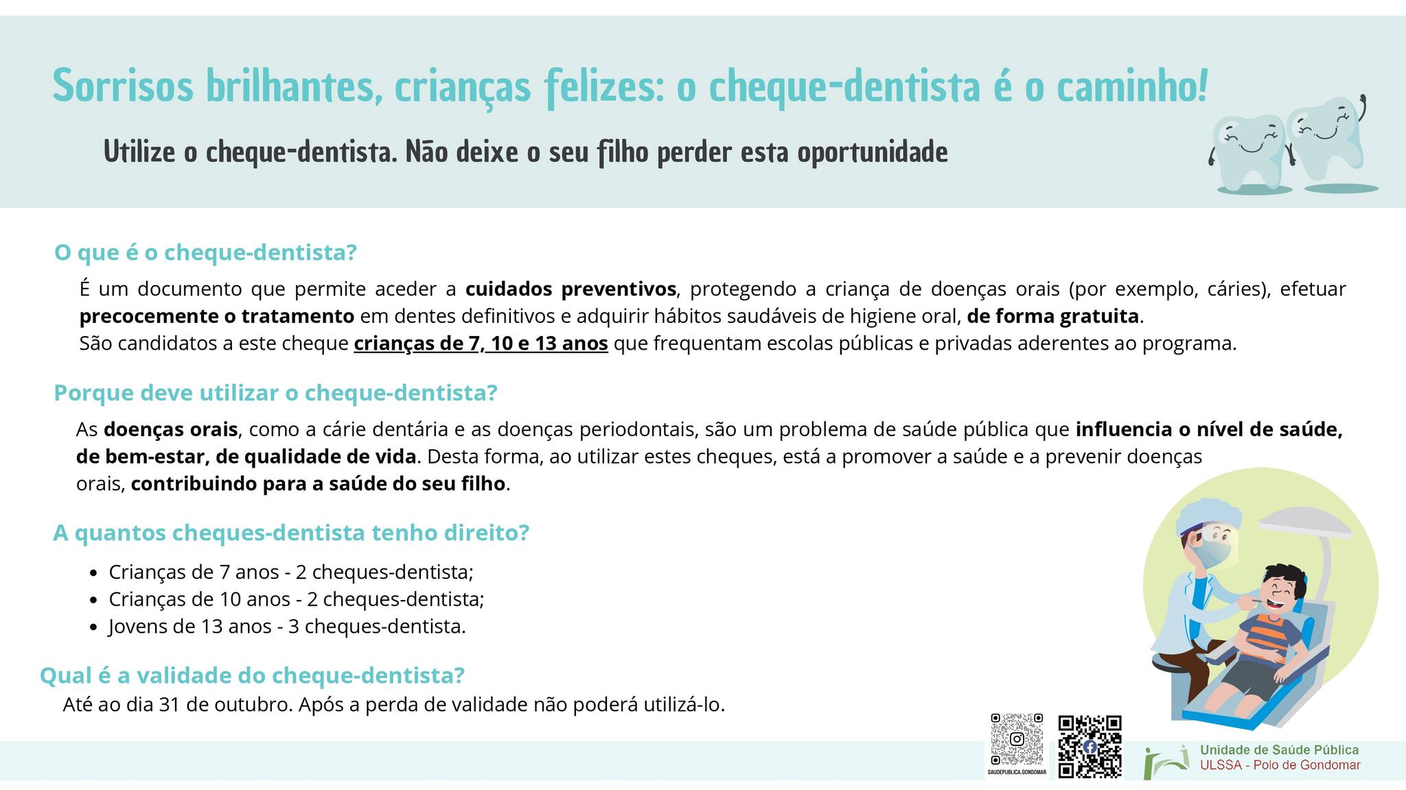 Os cheques-dentista são guias que dão acesso a um conjunto de cuidados de medicina dentária. Abrange diversas áreas como prevenção, diagnóstico e tratamento.