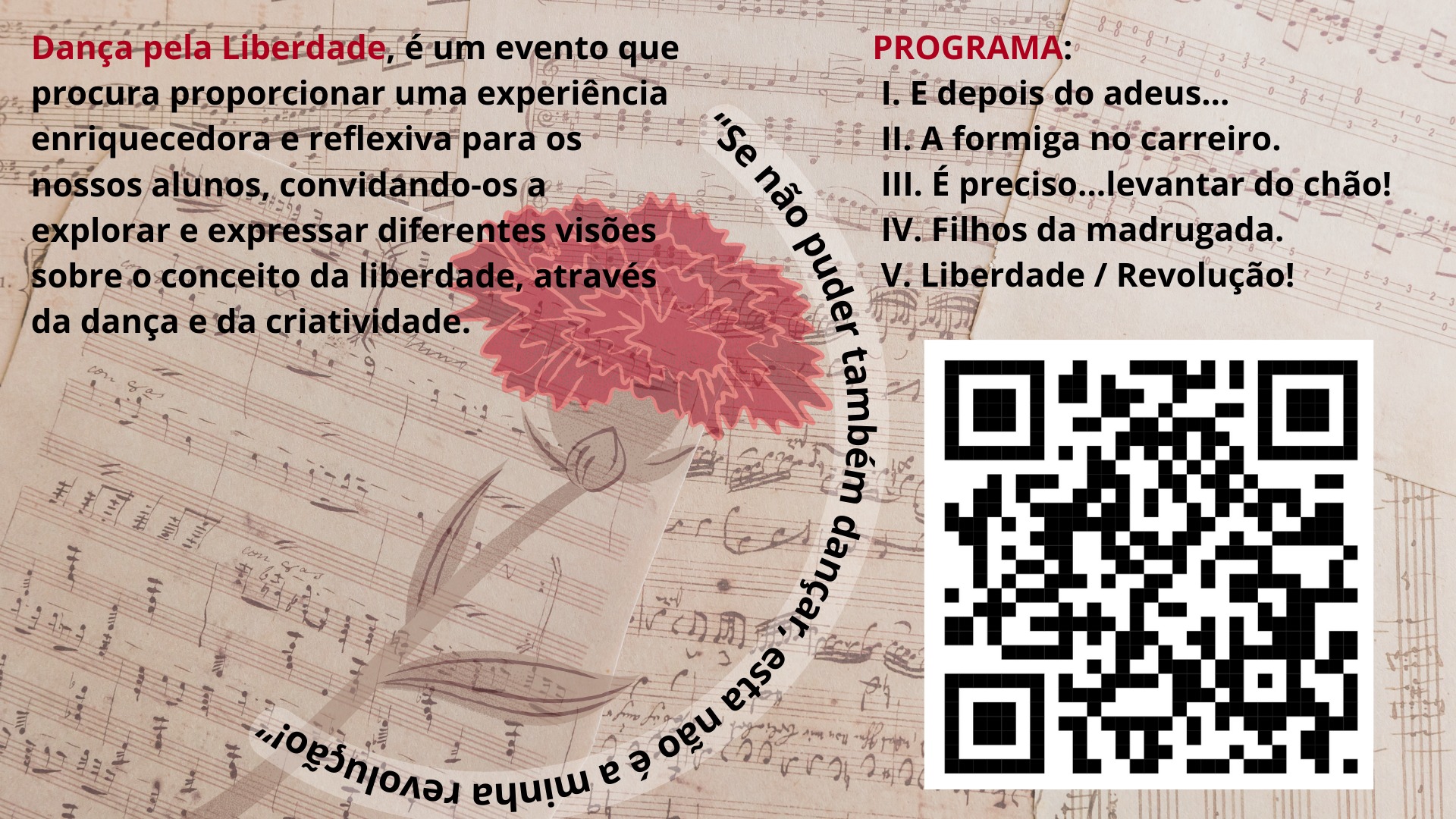 O Projeto MuDança realiza o evento “Dança pela Liberdade”, onde se procura proporcionar uma experiência enriquecedora e reflexiva, convidando toda a comunidade escolar a explorar e expressar diferentes visões sobre o conceito de “liberdade”, através da dança e da criatividade!