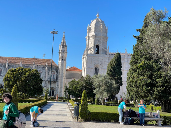 De volta à camioneta, os alunos partiram para o Jardim da Praça do Império onde fizeram uma última refeição em terras lisboetas, com vista para o Mosteiro dos Jerónimos, para o Padrão dos Descobrimentos e com o rio Tejo por horizonte.