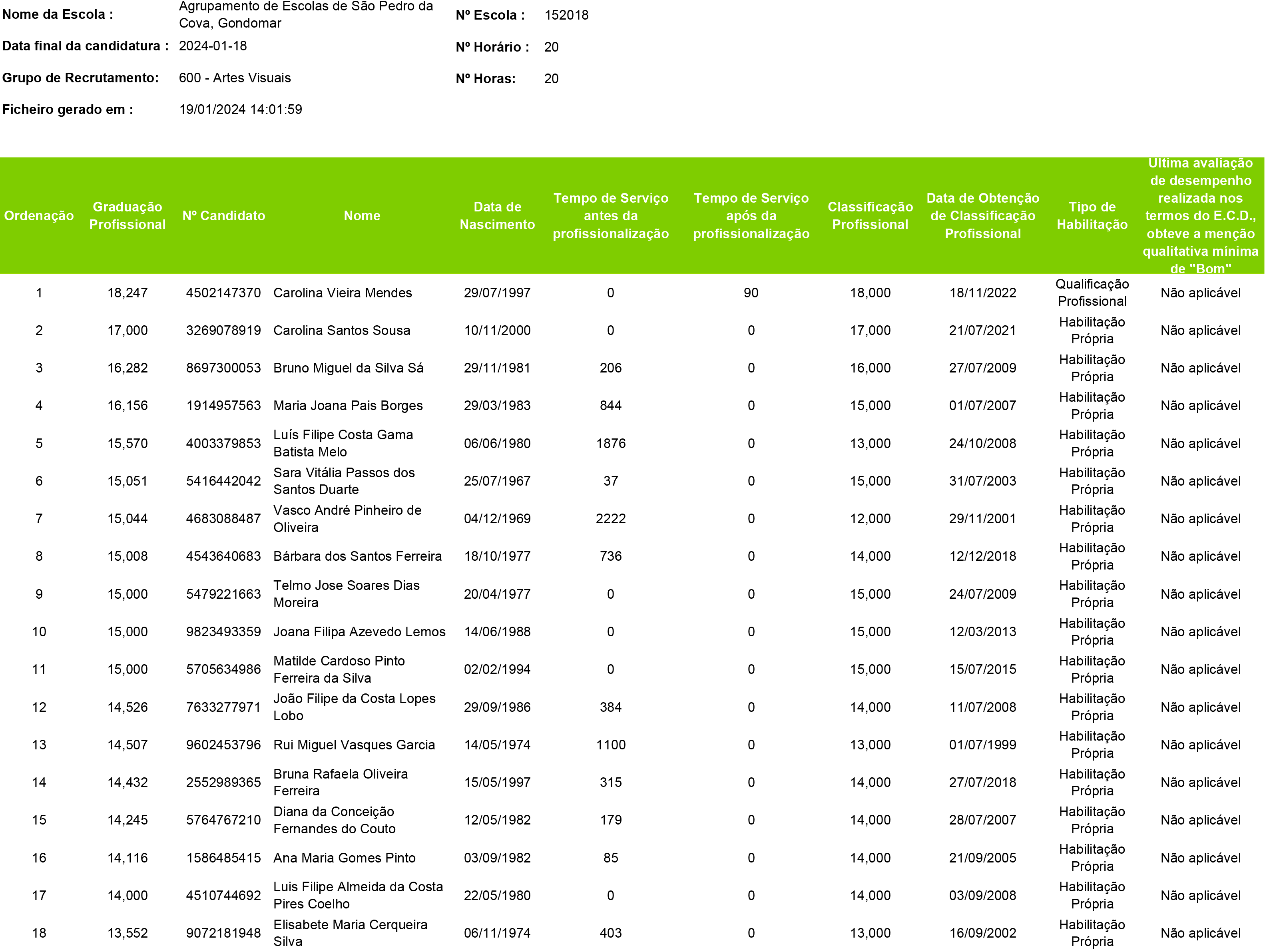 Já se encontram disponíveis as listas ordenadas de graduação para o grupo de Artes Visuais - 600 (horários 20 e 21).