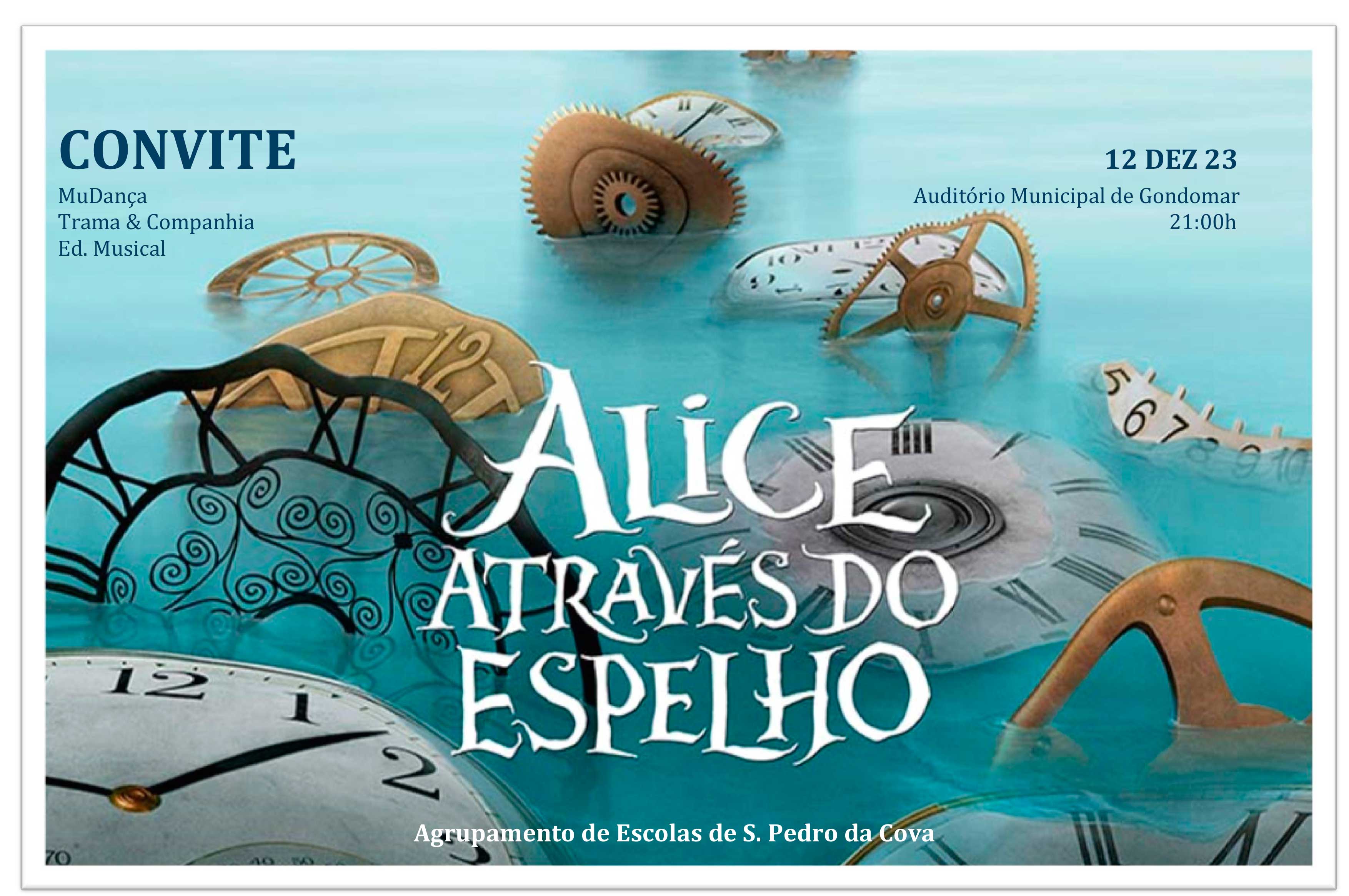 O Agrupamento de Escolas de S. Pedro da Cova convida a Comunidade Escolar a assistir ao espetáculo de Natal: “Alice através do espelho”, a realizar no dia 12 de dezembro de 2023, com início às 21:00h, no Auditório Municipal de Gondomar.