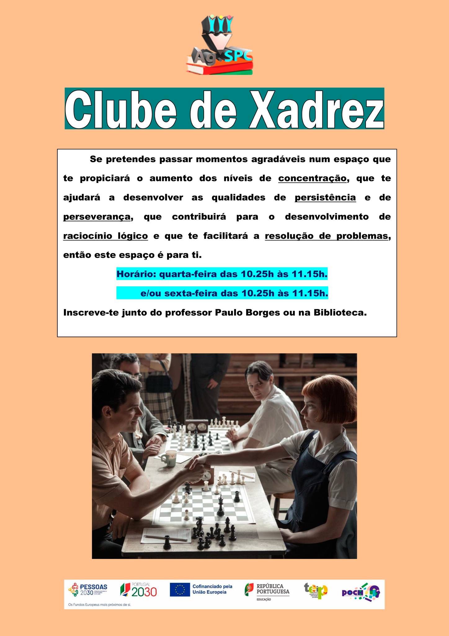 Já se encontra disponível o horário de funcionamento do Clube de Xadrez para o presente ano letivo.