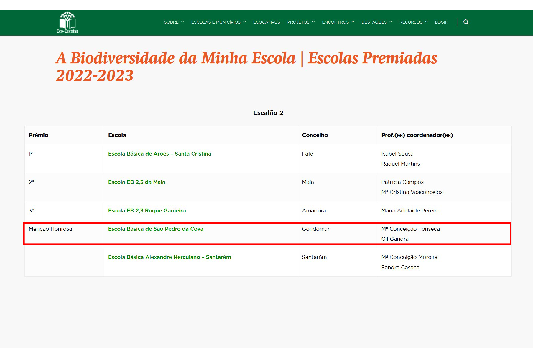 No âmbito do Programa Eco-Escolas, desenvolvido ao longo deste ano letivo, a Escola Básica de São Pedro da Cova congratula-se com uma menção honrosa.