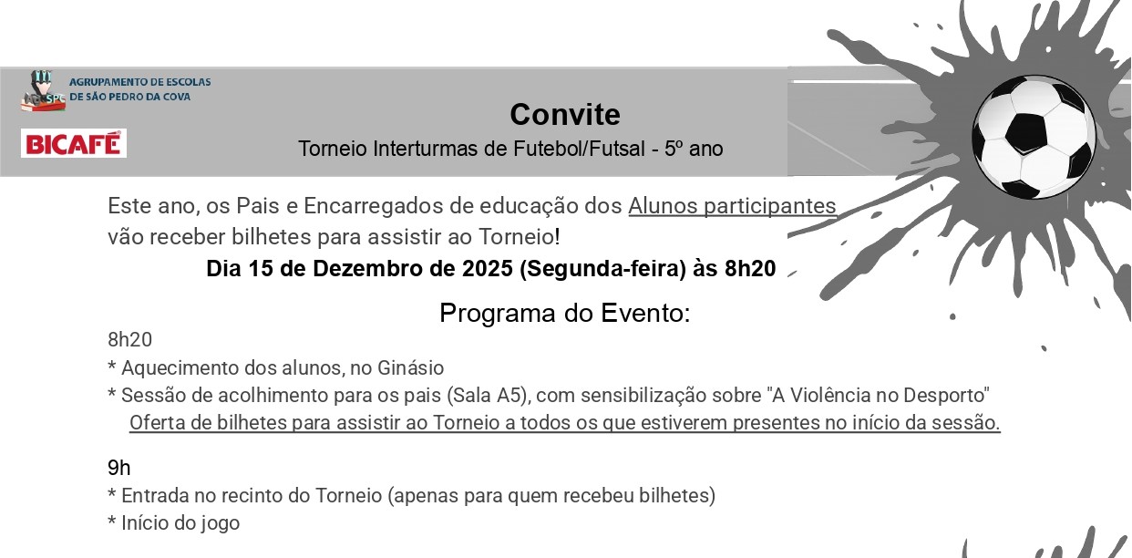 Para mais informações sobre o torneio, clique na ligação seguinte: Torneios Interturmas de Futebol/Futsal: 15 de dezembro 2025