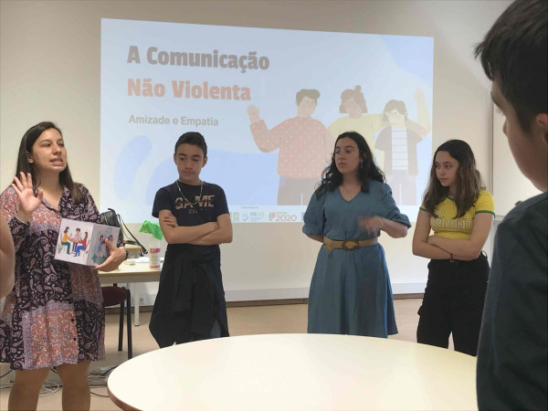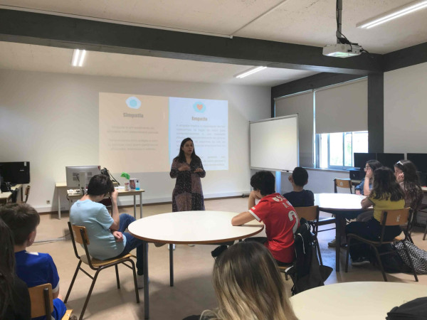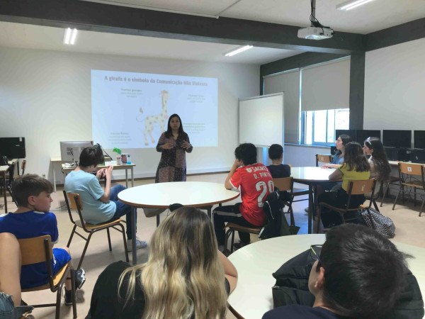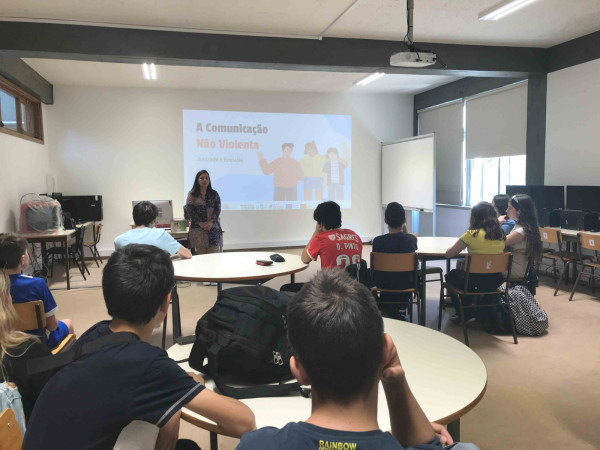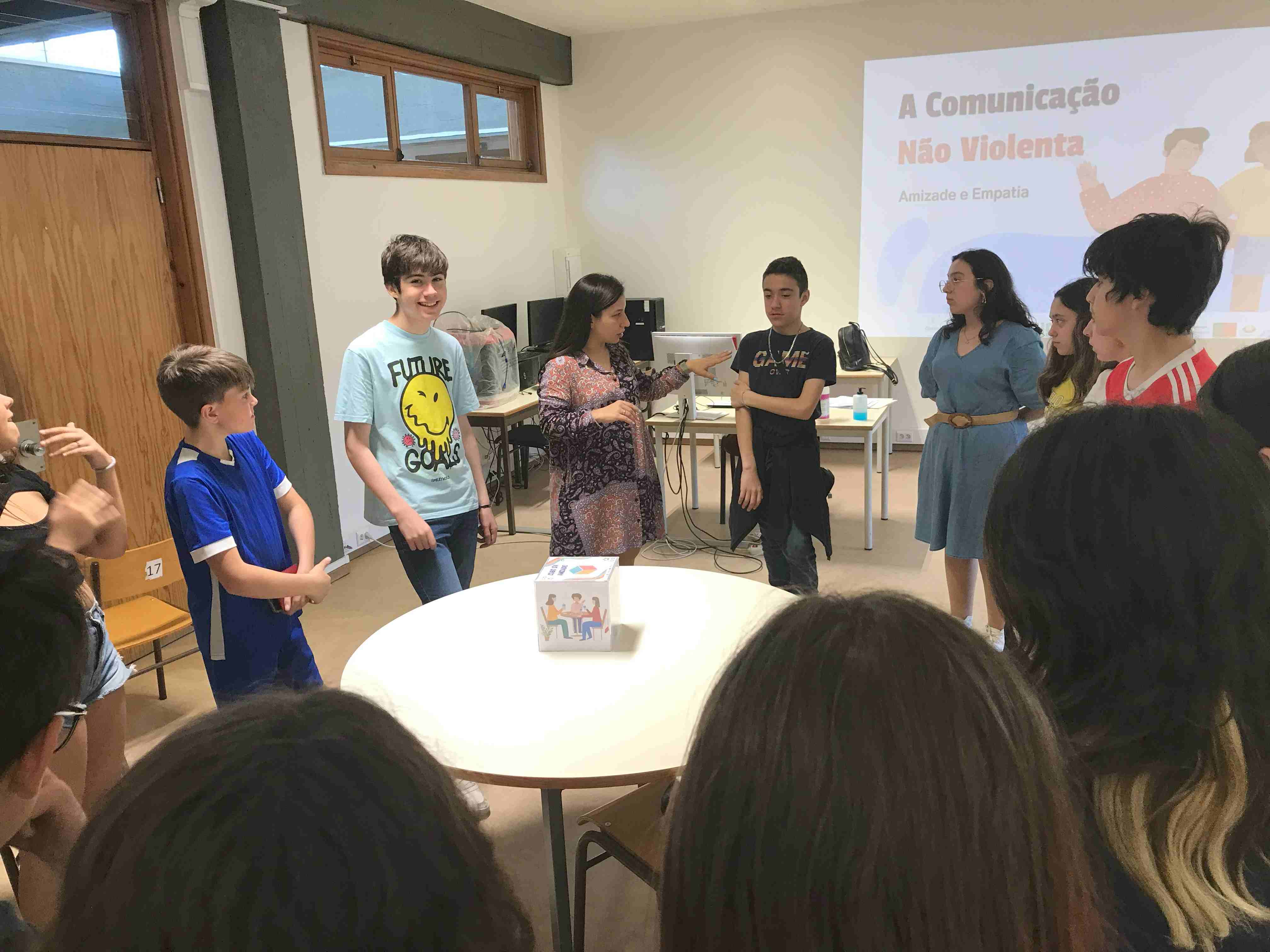 Ao longo da sessão os alunos tiveram a oportunidade de explorar conceitos de amizade e empatia, através da dinâmica de grupo “o cubo da amizade”, bem como reconhecer a importância da comunicação não violenta na forma como se escuta o outro e nos expressamos.