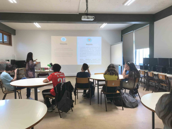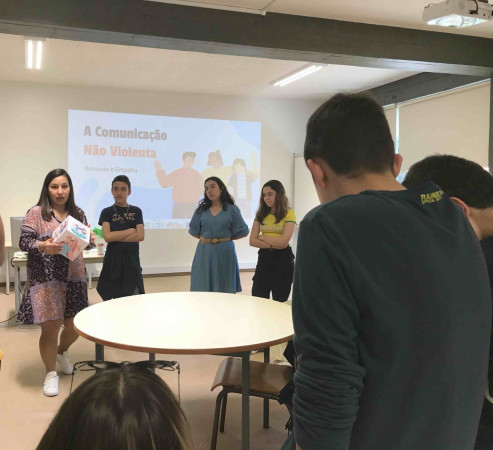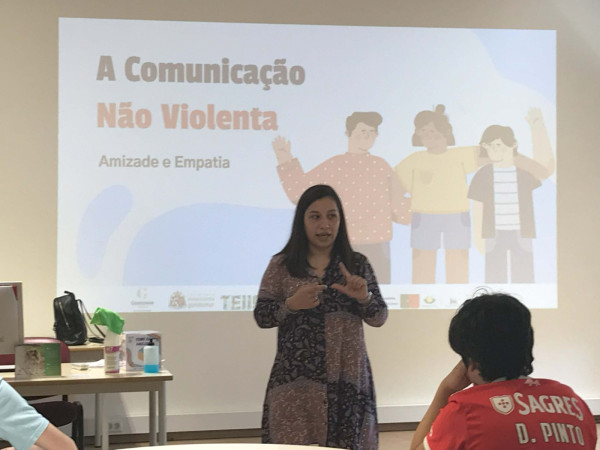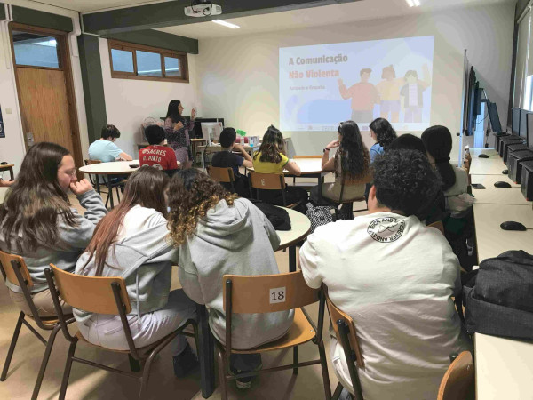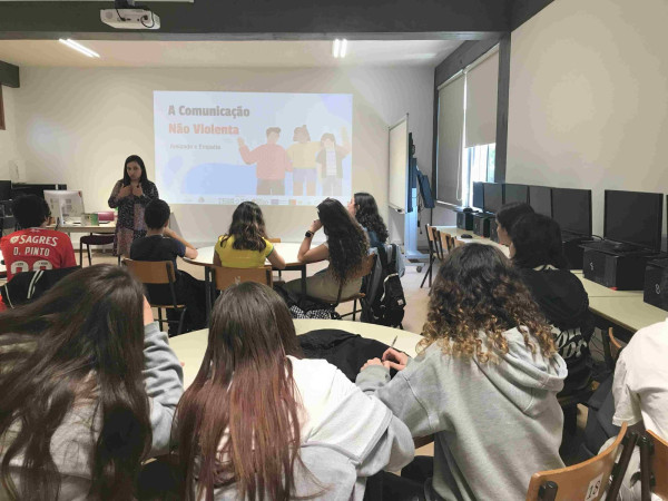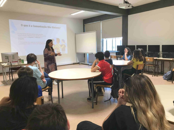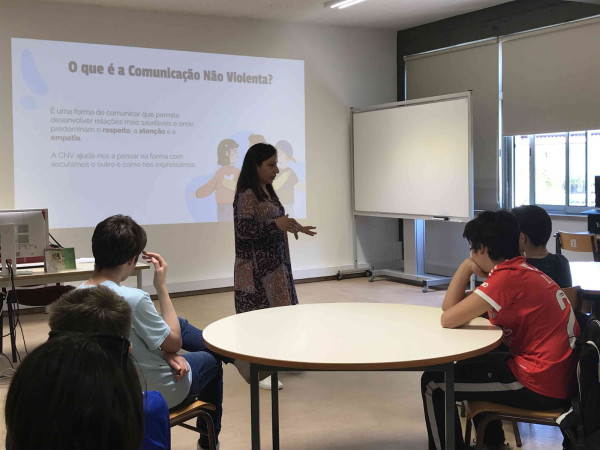 A docente de Cidadania em parceria com o Serviço de Psicologia e Orientação Vocacional e a Equipa do Projeto TEIIA CLDS-4G, dinamizou, hoje, na turma C do 8.º ano, na aula de TIC, uma ação de sensibilização dedicada ao tema “A Comunicação Não Violenta – A Amizade e a Empatia“.