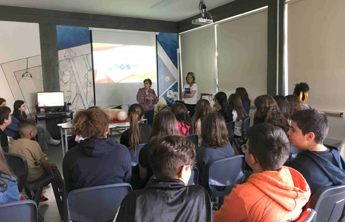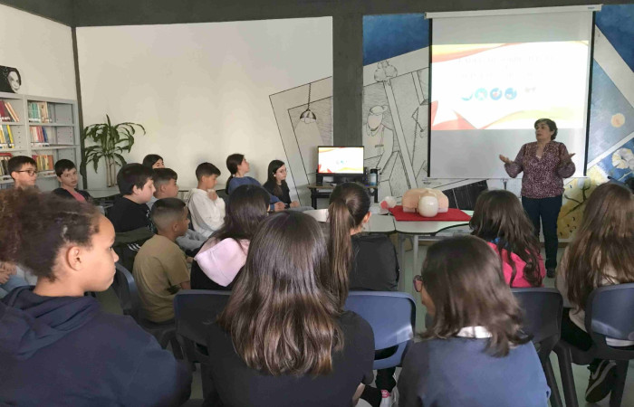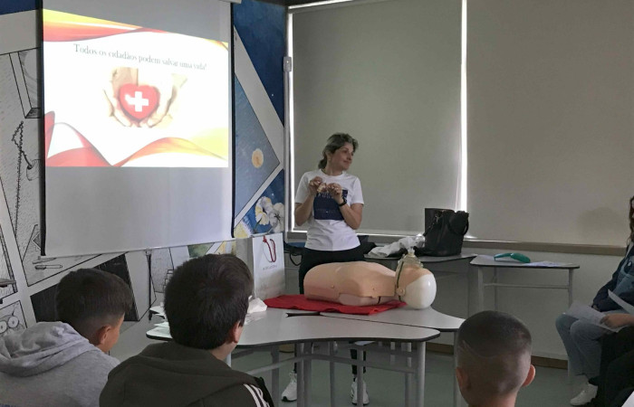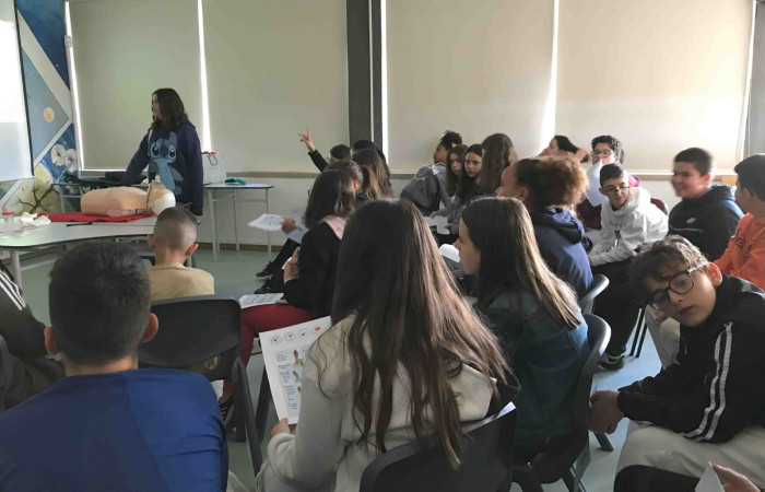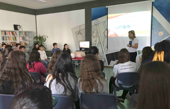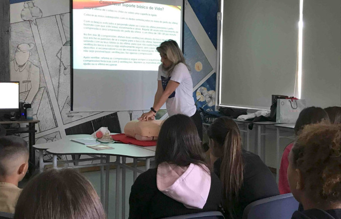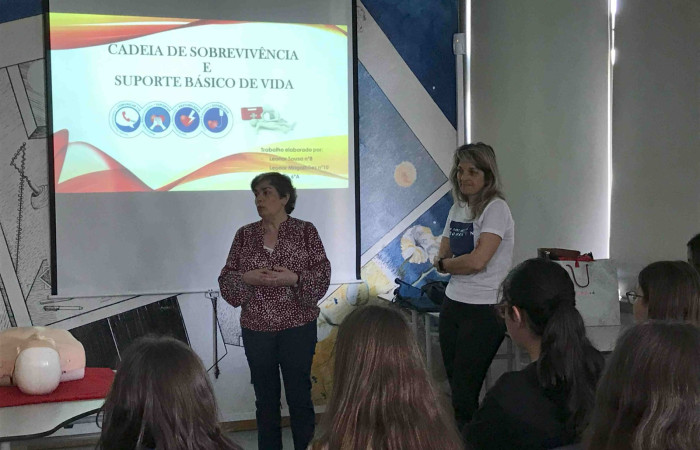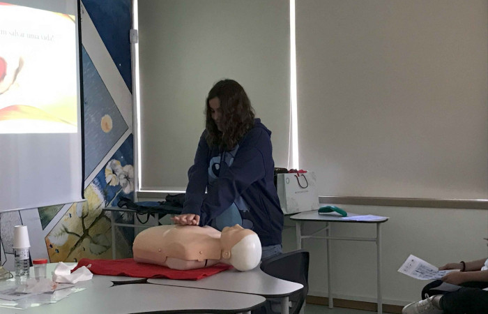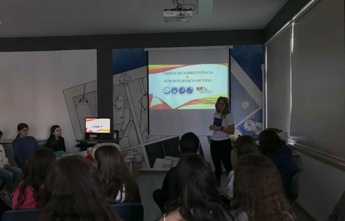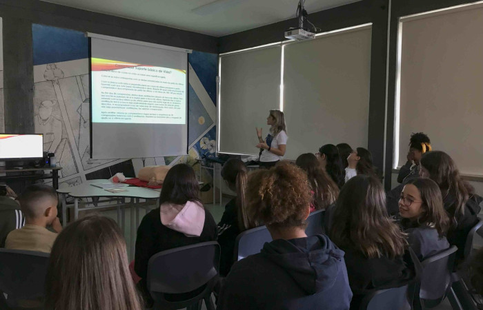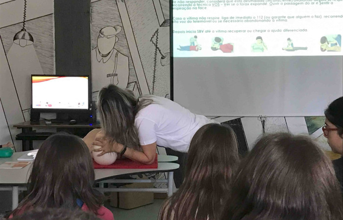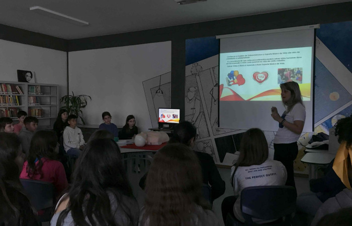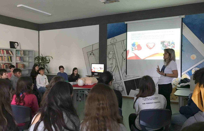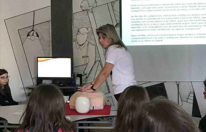 Os alunos do 6.ºA e 6.ºB tiveram a oportunidade de explorar a Cadeia de Sobrevivência, de visualizar e experienciar, em loco, a forma de atuação em situação de emergência e identificar os procedimentos para executar o Suporte Básico de Vida (SBV).