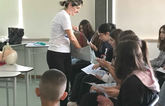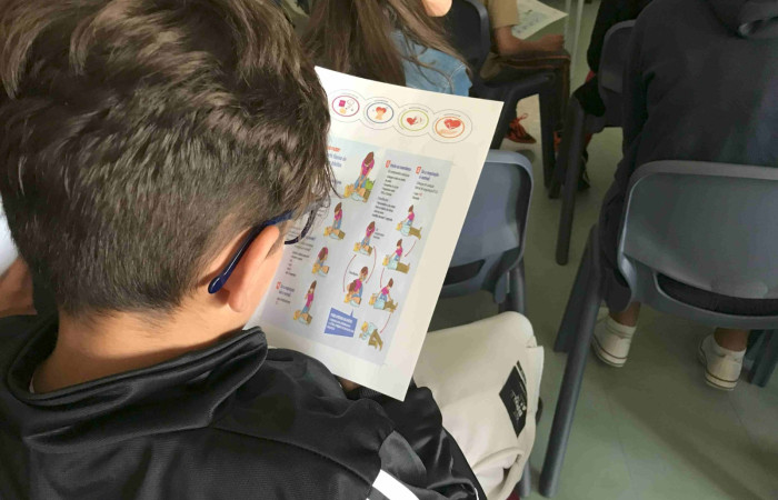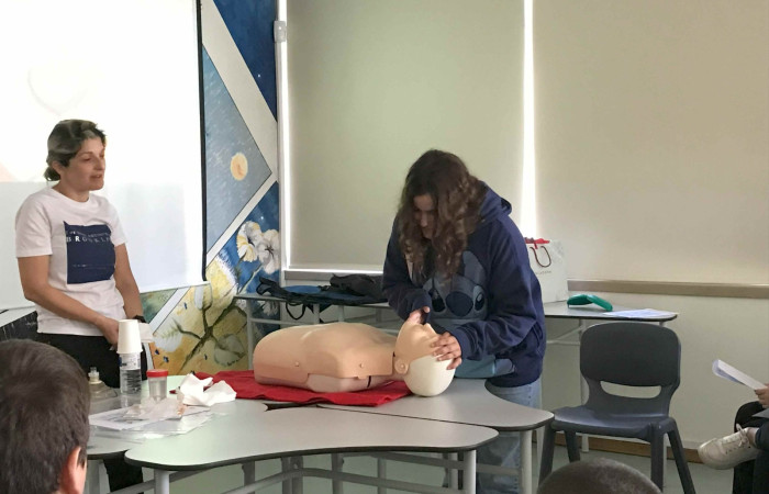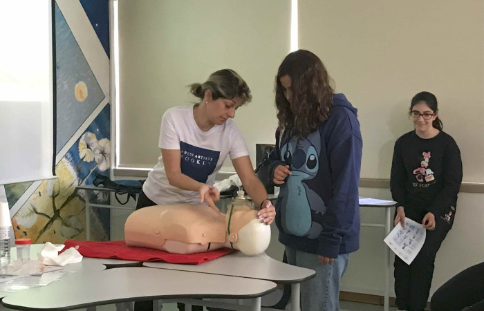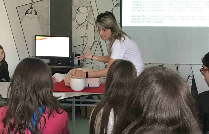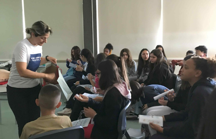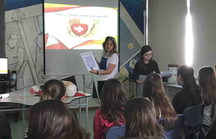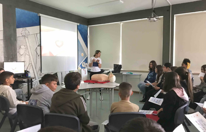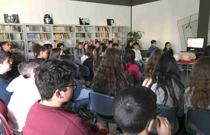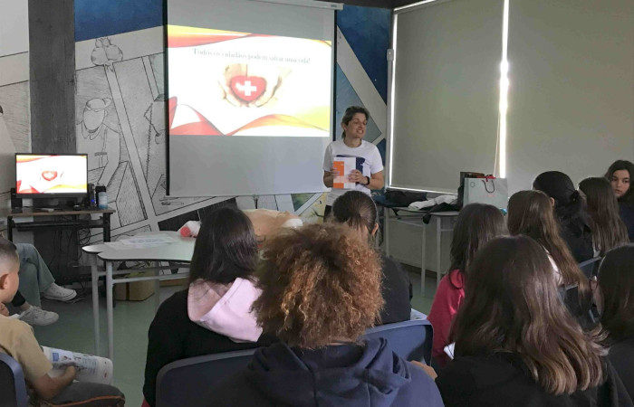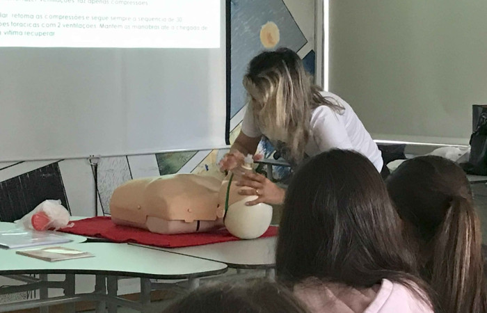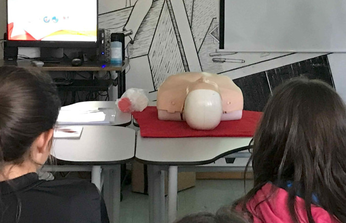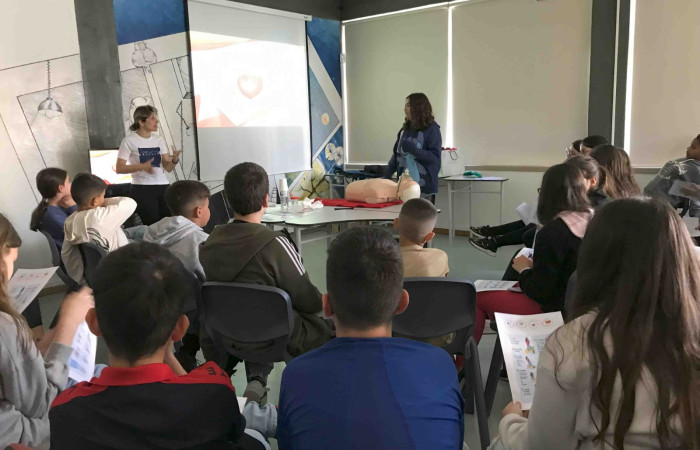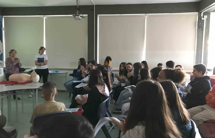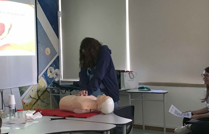 Os alunos do 6.ºA e 6.ºB tiveram a oportunidade de explorar a Cadeia de Sobrevivência, de visualizar e experienciar, em loco, a forma de atuação em situação de emergência e identificar os procedimentos para executar o Suporte Básico de Vida (SBV).