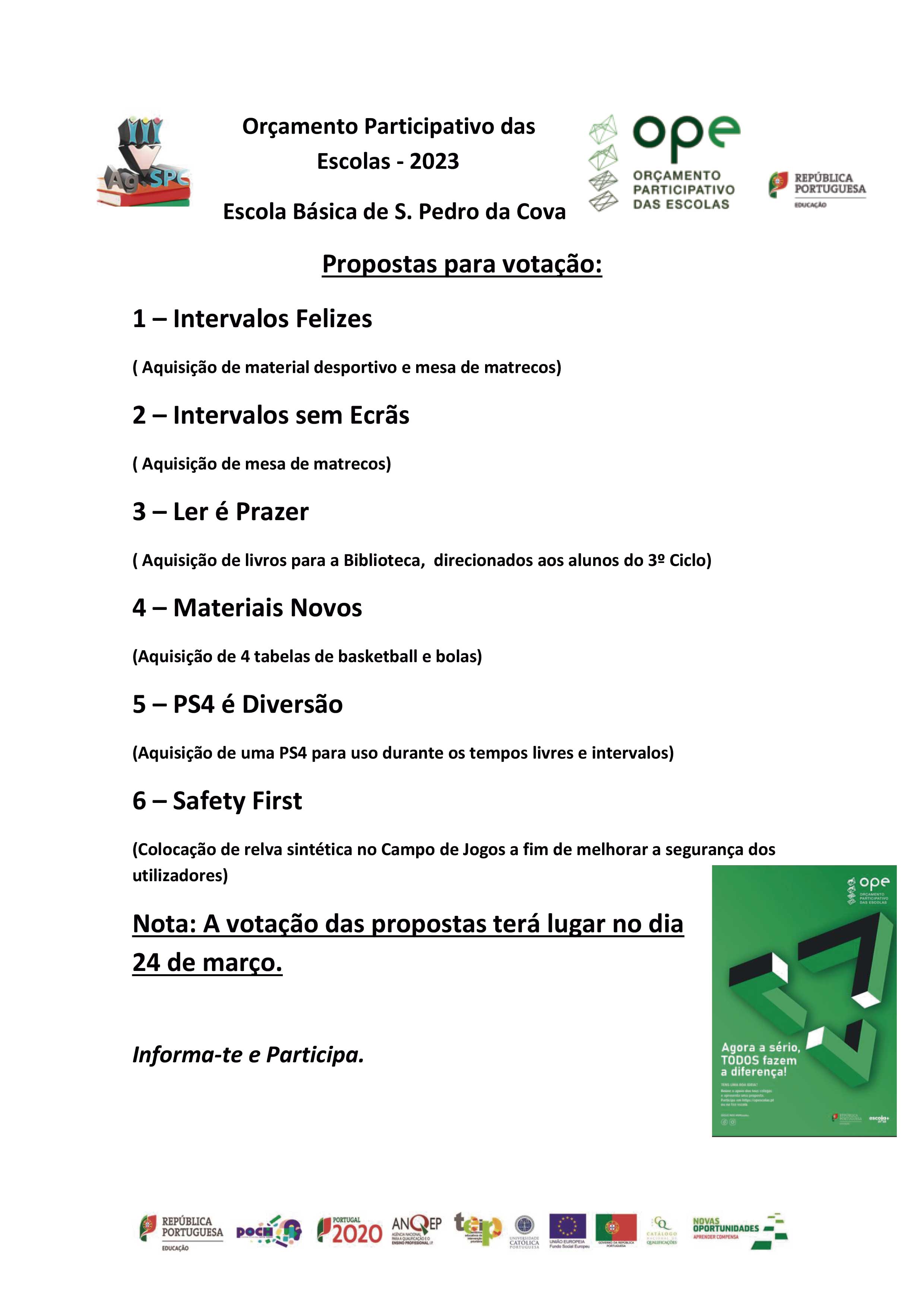 Já se encontram disponíveis as propostas para votação, no âmbito do Orçamento Participativo das Escolas 2023.