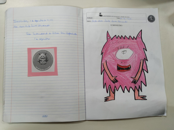 Consistiu no visionamento de uma história cujo título foi” O Monstro Rosa”, seguiu-se um diálogo/reflexão sobre as desigualdades sociais e preconceito, trabalhando a inclusão social.