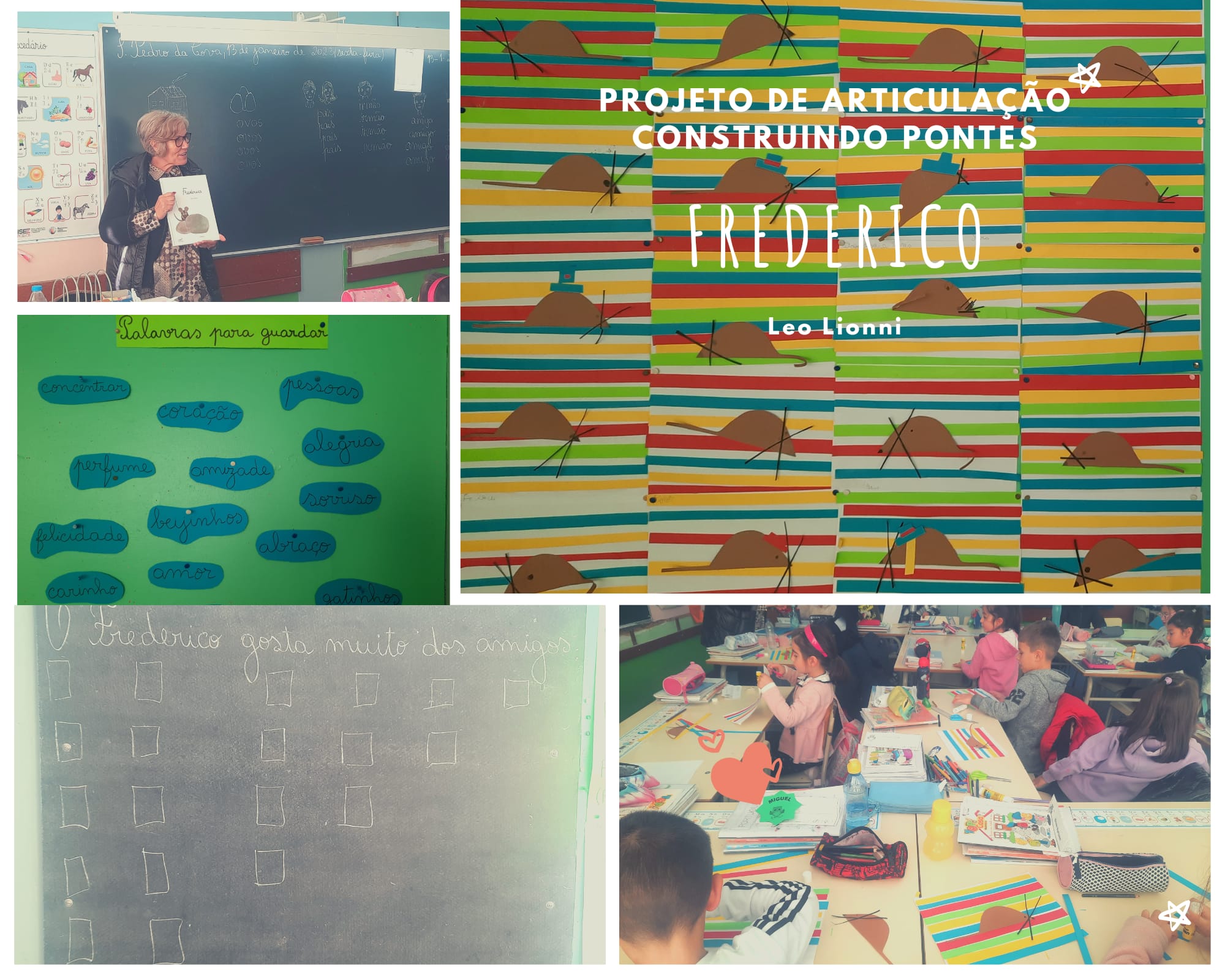 Dando continuidade ao projeto, foi trabalhada a história: "Frederico" de Leo Lionni, um ratinho especial que guardava raios de sol, cores e palavras, para os dias frios de inverno.