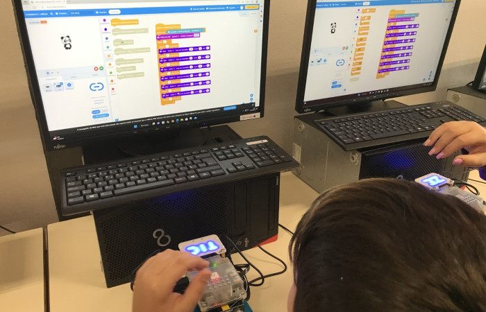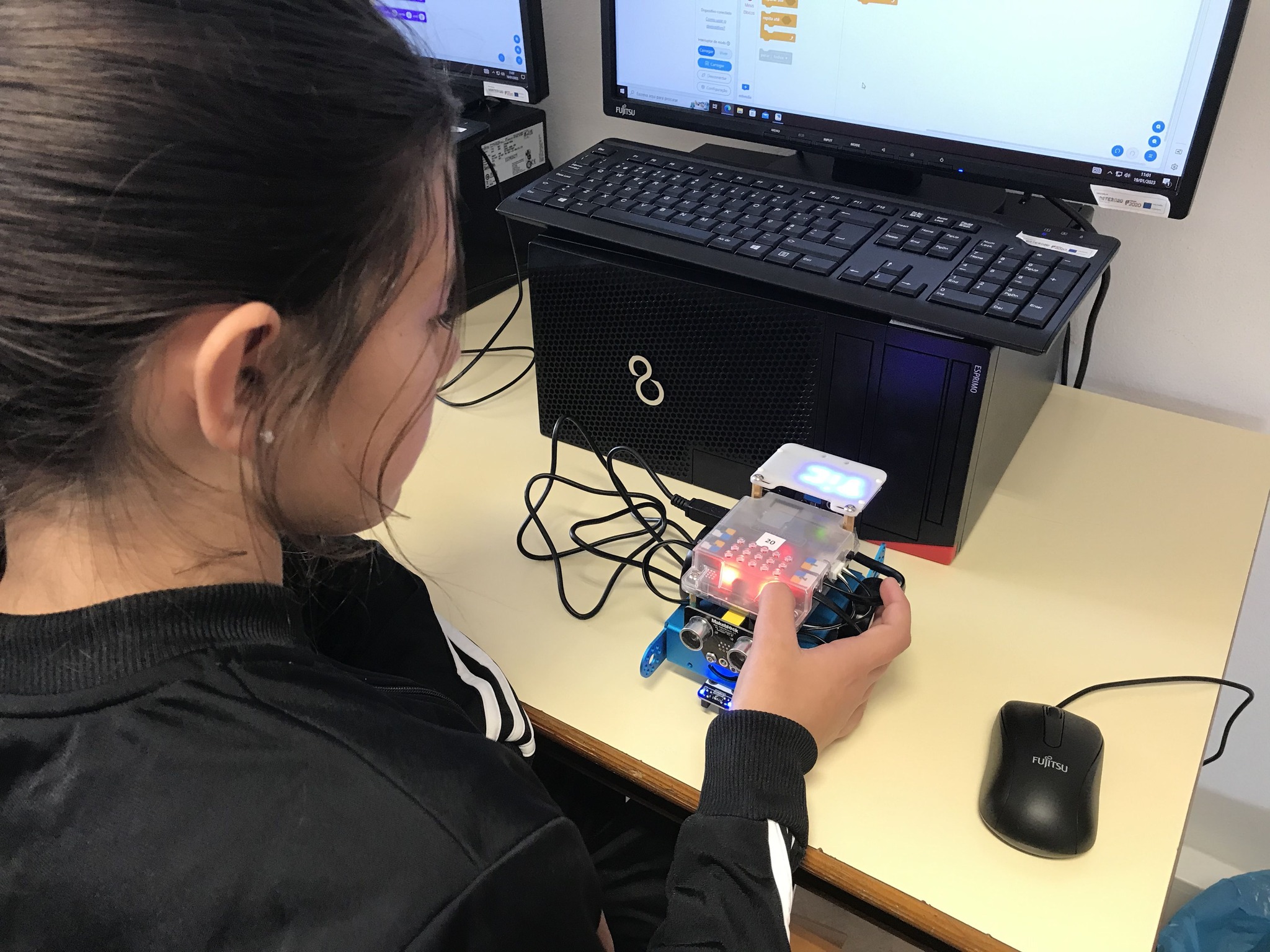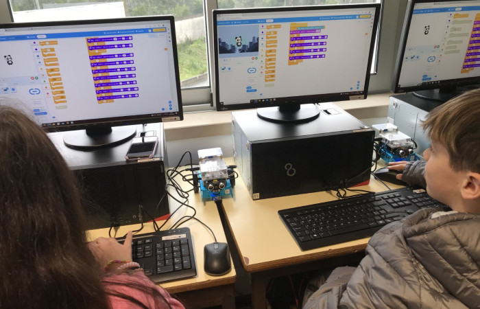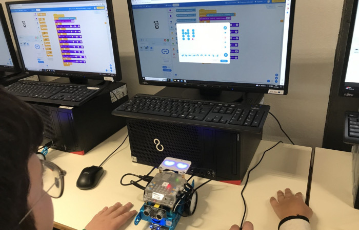 No final, construíram um padrão com as cores que o rato tinha guardado e construíram também um rato e criaram um painel com os trabalhos realizados!