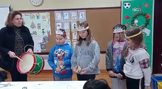 Cada aluno decorou a sua coroa de reis e ensaiou a letra da música.